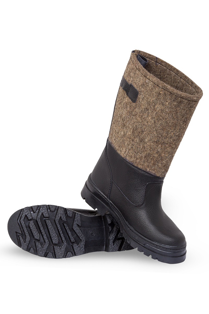 Сапоги изготавливаются из натуральных материалов: кожи, войлока обувного чисто шерстяного, которые эффективно удерживают тепло при температуре от −20 до-45С и в то же время обладают дышащими свойствами.