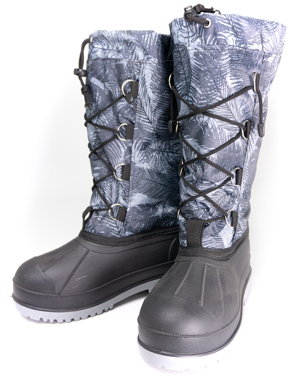Увеличенная толщина в носочной части галоши. Шпора для удобства снятия. Возможность ошиповки под заказ. Комфортная температура до – 30. Голенище двухслойное, утеплено нетканым полотном плотностью 350 гр/м кВ. Ткань голенища высокопрочный Оксфорд, цвет камуфляж, с водооталкивающей пропиткой. Форма голенища анатомическая. Метод крепления прошивной через тесьму, в две строчки нитками ЛЛ, ЛХ на 100. Утепляющий чулок 3-х слойный: фольга и два слоя нетканого полотна ТМ Полизон. Дополнительная войлочная стелька в галоше. Фиксация на ноге шнурами по голенищу через полукольца и через фиксатор шнуром по верху голенища, затягивающийся через фиксатор шнур по верху голенища.