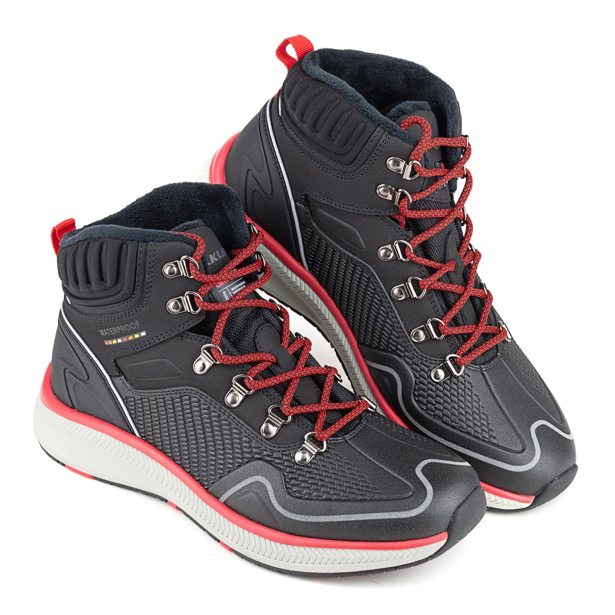 Внутренняя часть ботинка выполнена из утеплителя Thinsulate. Благодаря своей текстуре он надежно сохраняет тепло, неощутим по весу и устойчивый к сдавливанию, а так же флиса. Подошва состоит из двух видов пошовы, верхний слой из материала Эва придает легкость ботинку, устойчив к встречающимся на дороге химическим веществам, а так же имеет хорошую амортизацию. Нижняя часть подошвы выполнена из резины, что увеличивает сцепление с поверхностью из снега и льда.