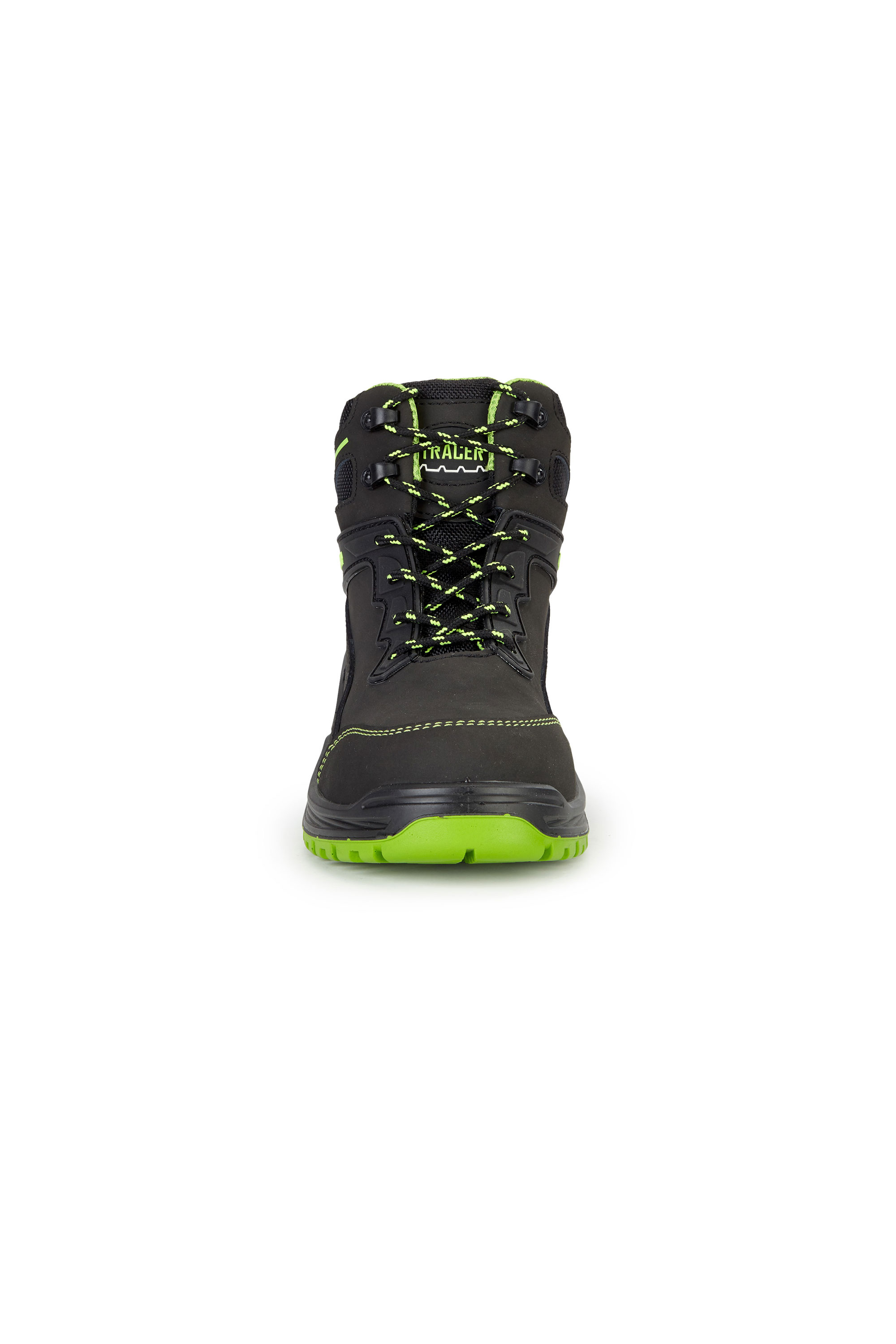 Особенности конструкции: на боковых частях союзки присутствуют сегменты из ПВХ для дополнительной защиты лодыжек стопы, на пяточной части пришита петля из прочного полиэстера для удобства снятия обуви. Сочетание черного и неонового цвета придает обуви модный и современный вид. Верх обуви прошит прочной армированной п/э нитью. Модные верхние люверсы для шнурков из пластика. Прочные двухцветные круглые плетеные шнурки из полиамида. Обувная колодка эргономичной формы. Полное отсутствие металлических деталей делает эту обувь более легкой и комфортной в эксплуатации.