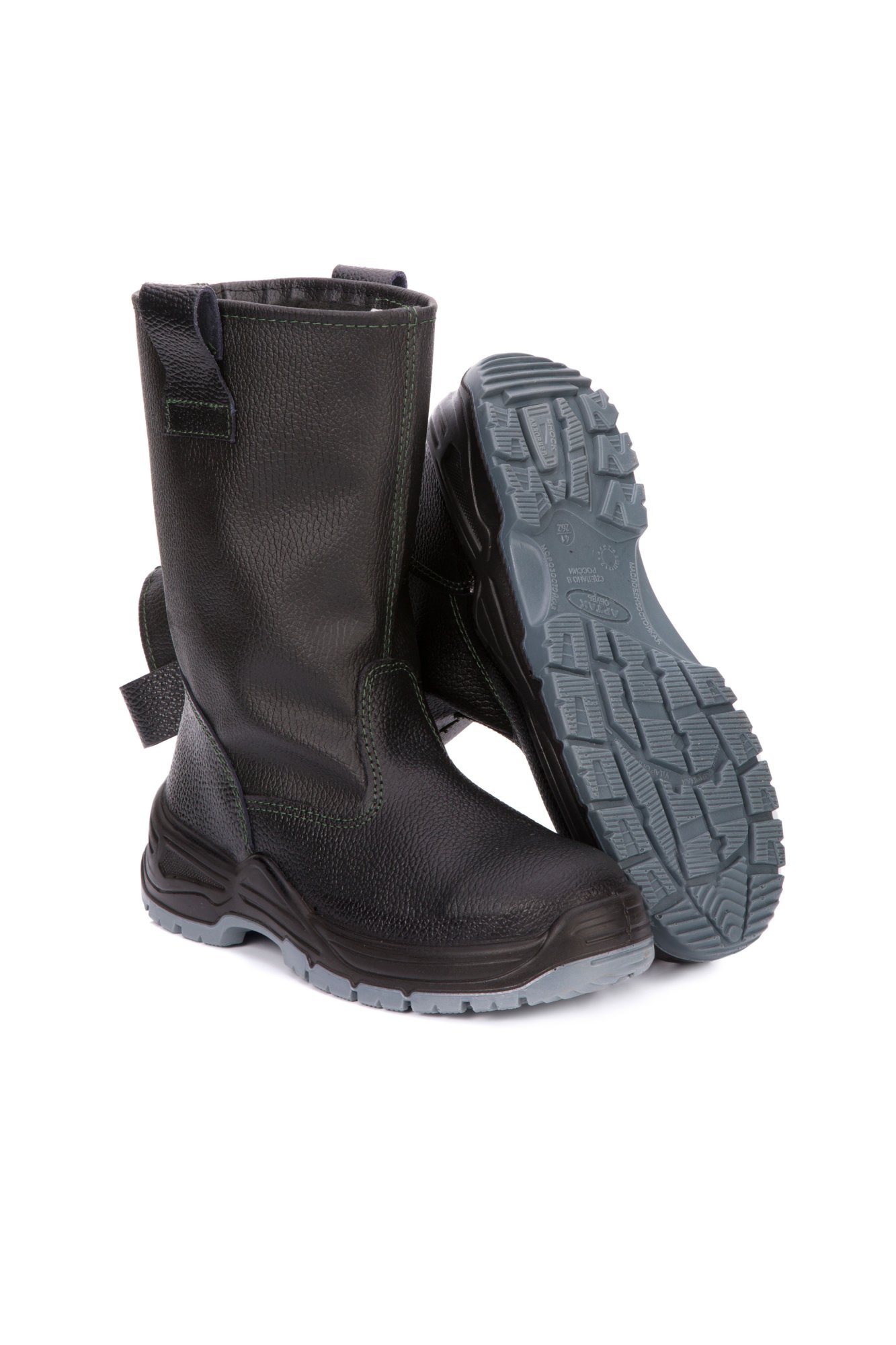 Верх обуви: комбинированный, союзка выполнена из натуральной кожи (юфть), а высокое голенище из трехслойной кирзы, что дополнительно защищает ноги от внешних воздействий. Ремешок для регулировки объема голенища надежно фиксирует сапог на ноге.