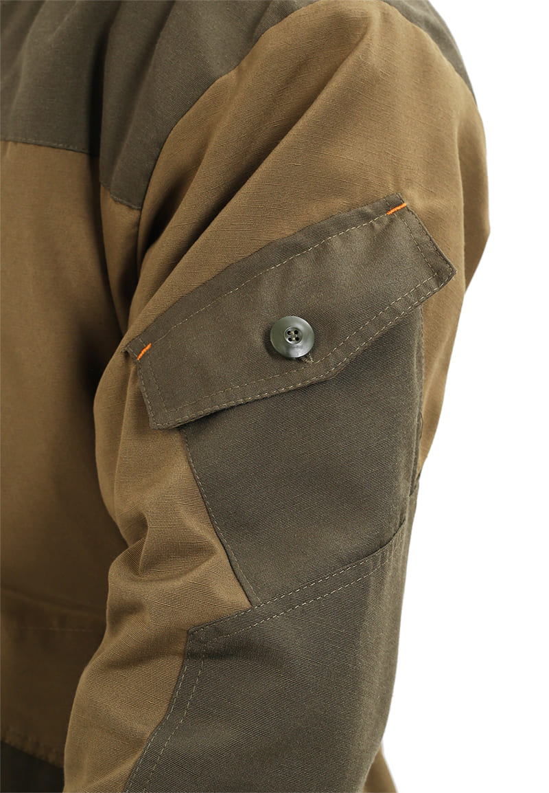 - множество накладных карманов с клапанами, застегивающимися на петлю и пуговицу и верхними карманами в шве
