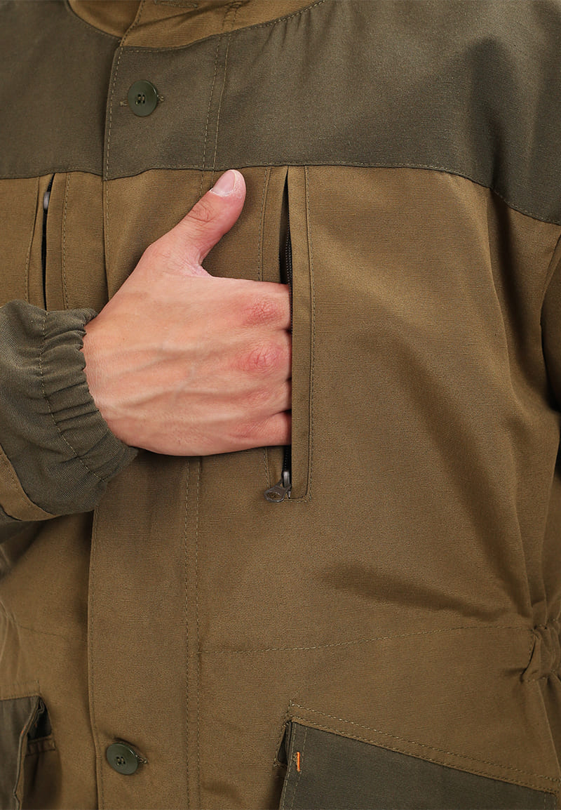 - верхние прорезные карманы на молнии, нижние – прорезные с входом “антивор” и клапаном с застежкой на петлю и пуговицу