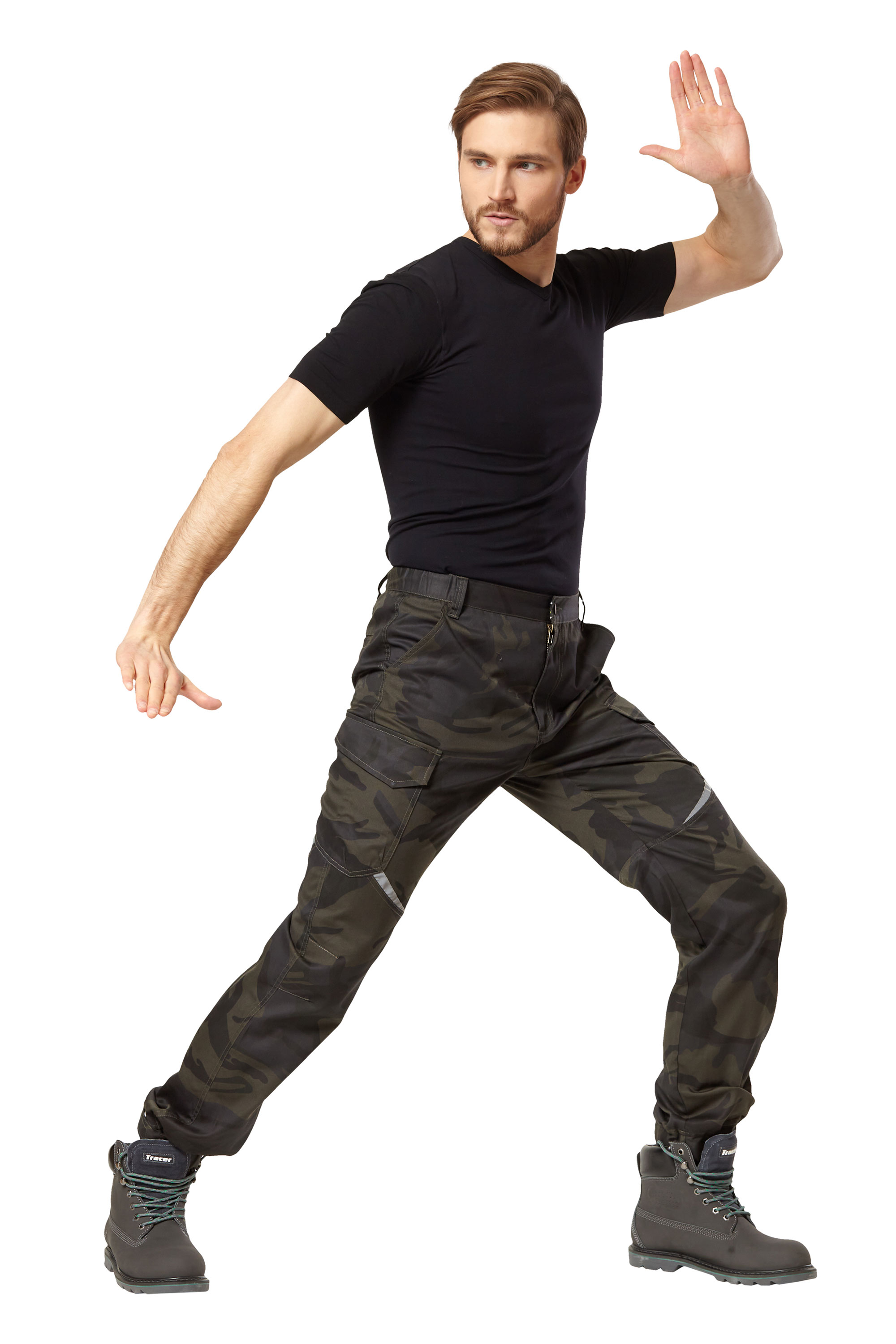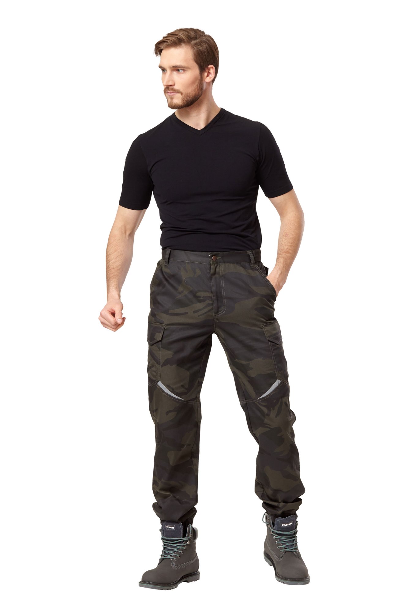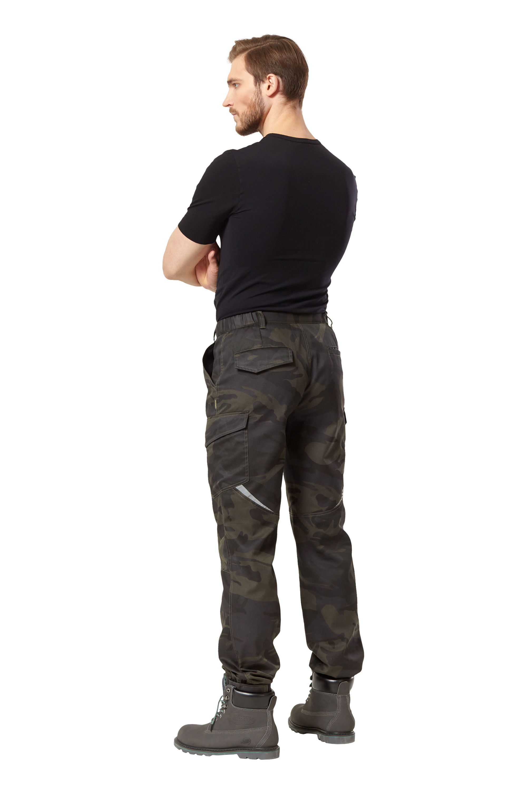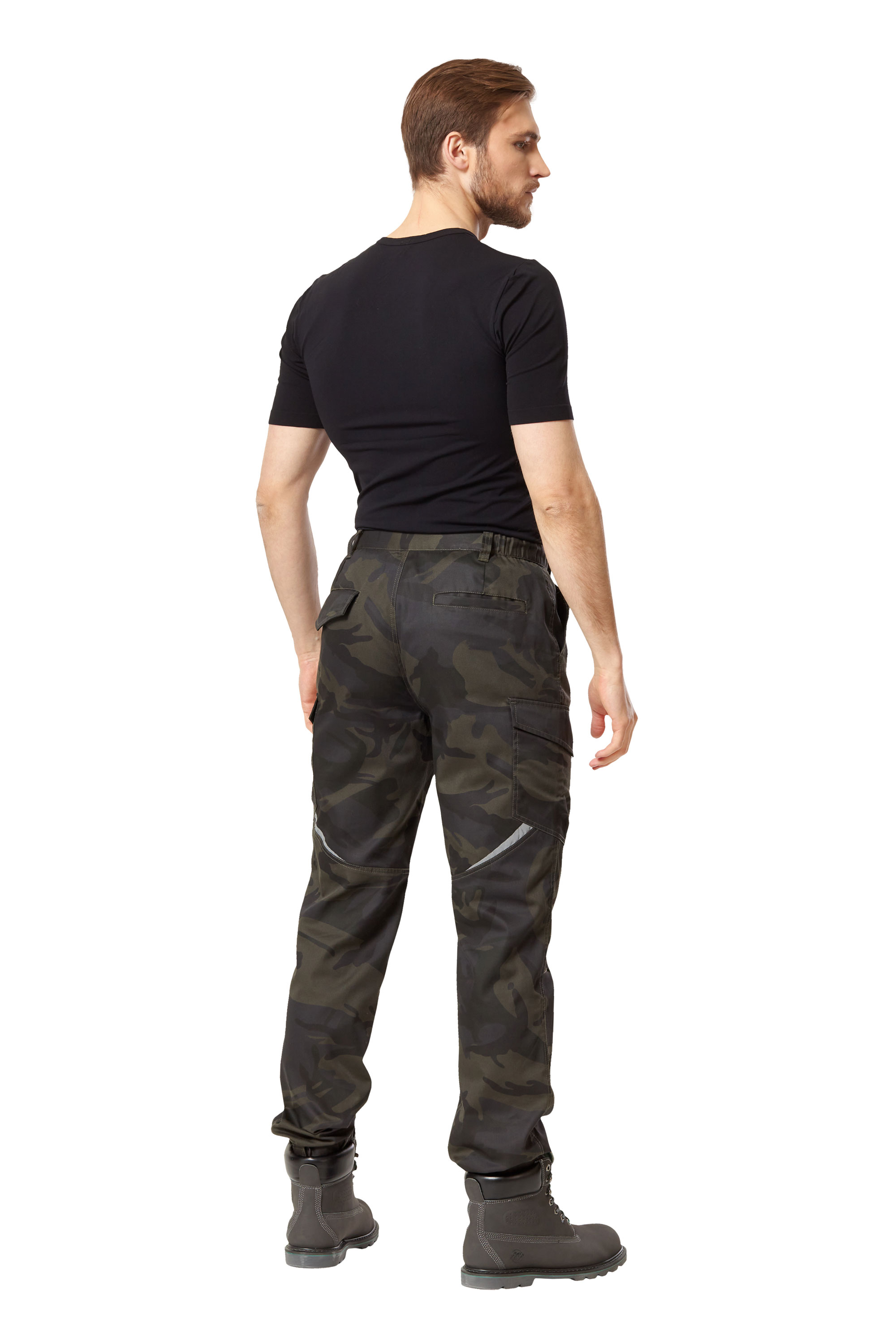• Карманы: два верхних; два объёмных боковых с клапанами с застежками на контактную ленту; два задних прорезных с листочкой, левый задний карман с клапаном
