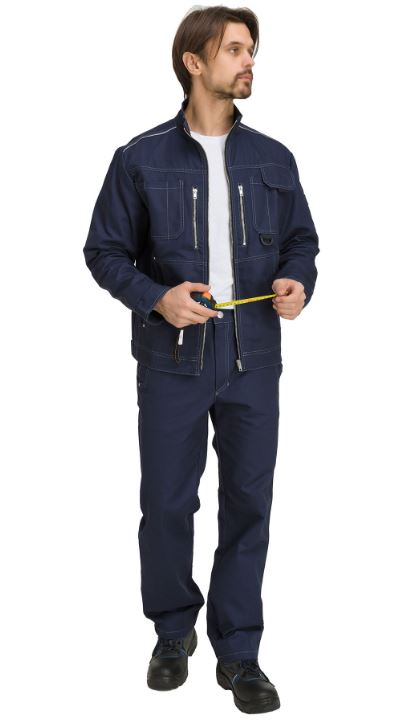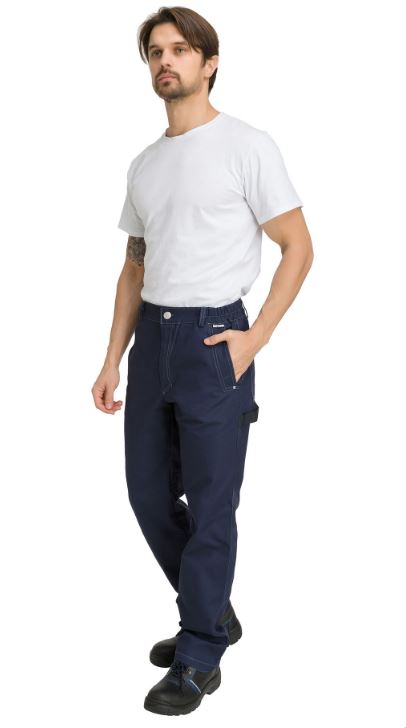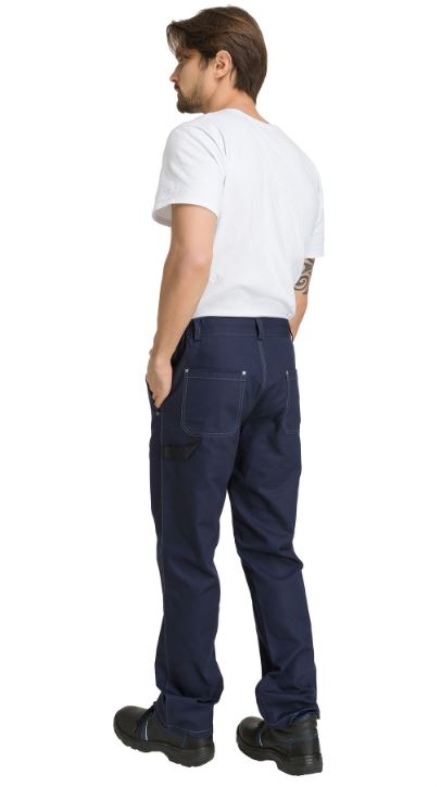 Брюки с застежкой гульфик на тесьму-молнию. На передних половинках карманы с наклонным входом с листочкой с нижним втачным углом. По нижнему краю кармана установлен хольнитен. Задние половинки с верхними накладными карманами. Вход накладных карманов усилен хольнитенами.
