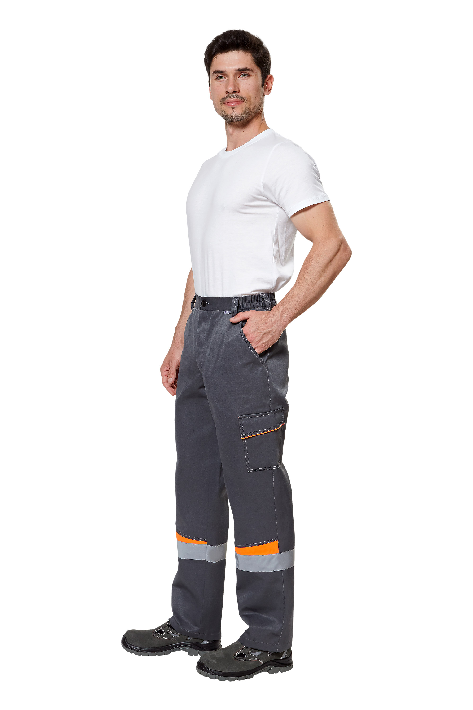 • Визуальные элементы защиты: световозвращающая лента шириной 50 мм по швам притачивания кокеток полочек и спинки, на рукавах куртки и в нижней части брюк