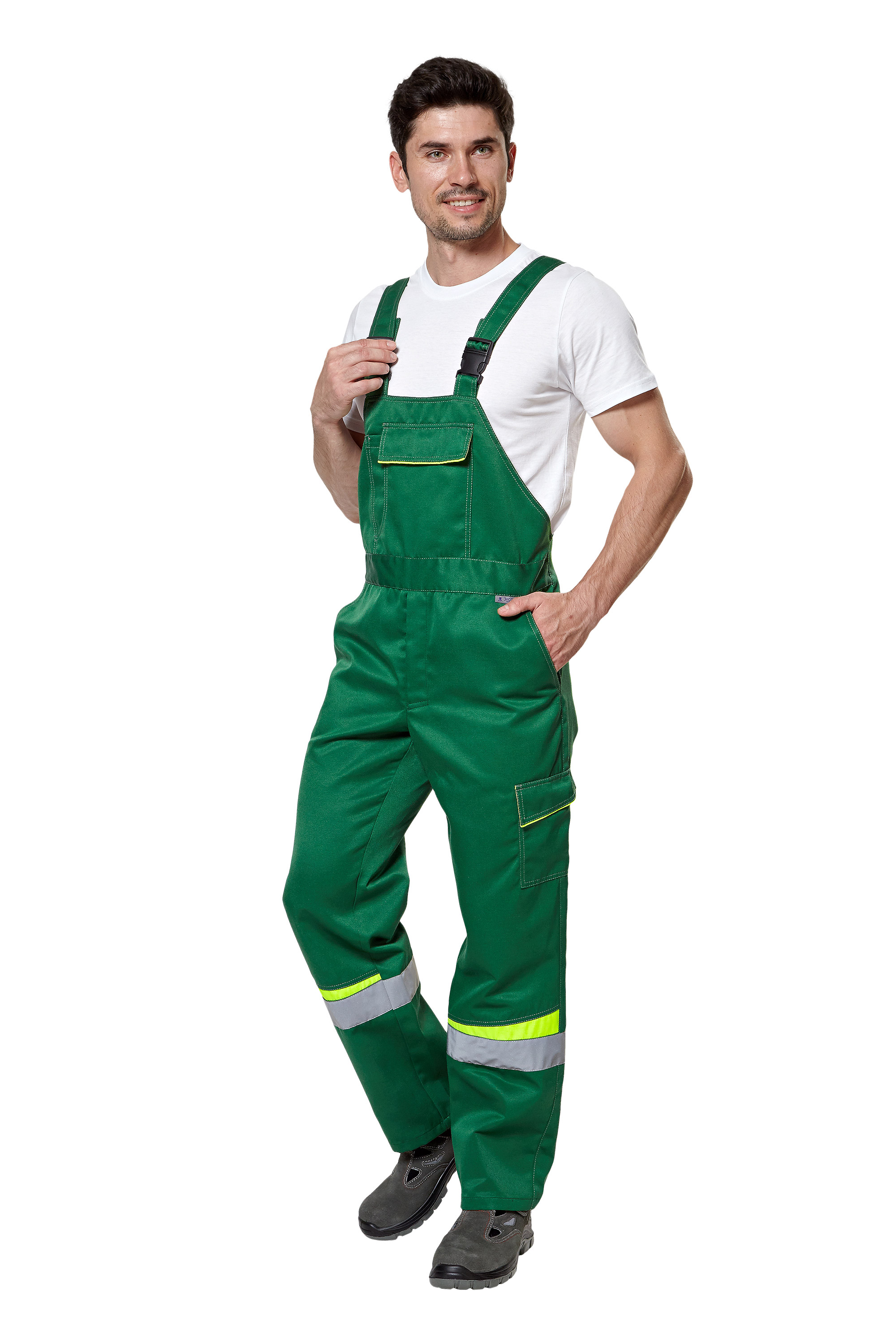 • Визуальные элементы защиты: световозвращающая лента шириной 50 мм по швам притачивания кокеток полочек и спинки, на рукавах куртки и в нижней части полукомбинезона.