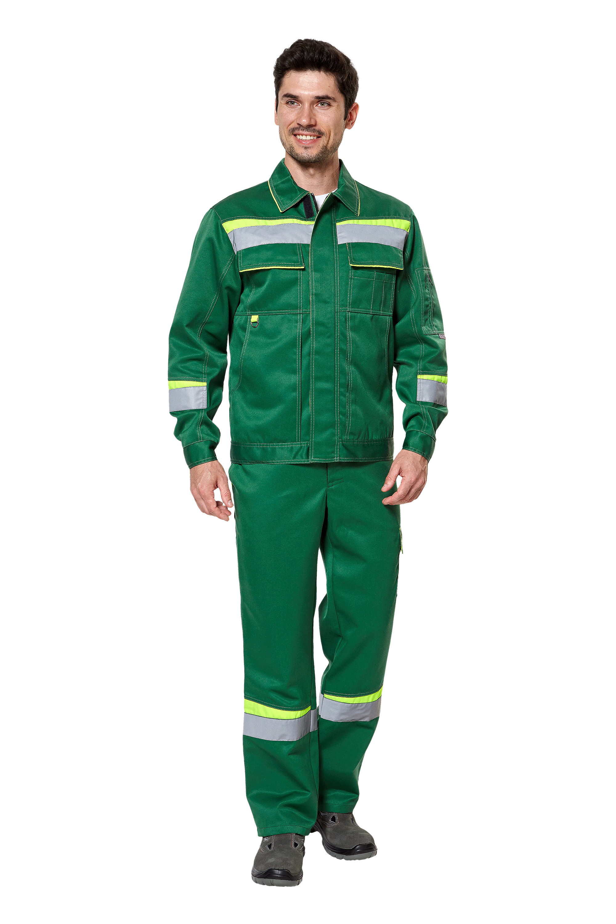Костюм рабочий мужской летний "Комфорт 2" зеленый/неоновый