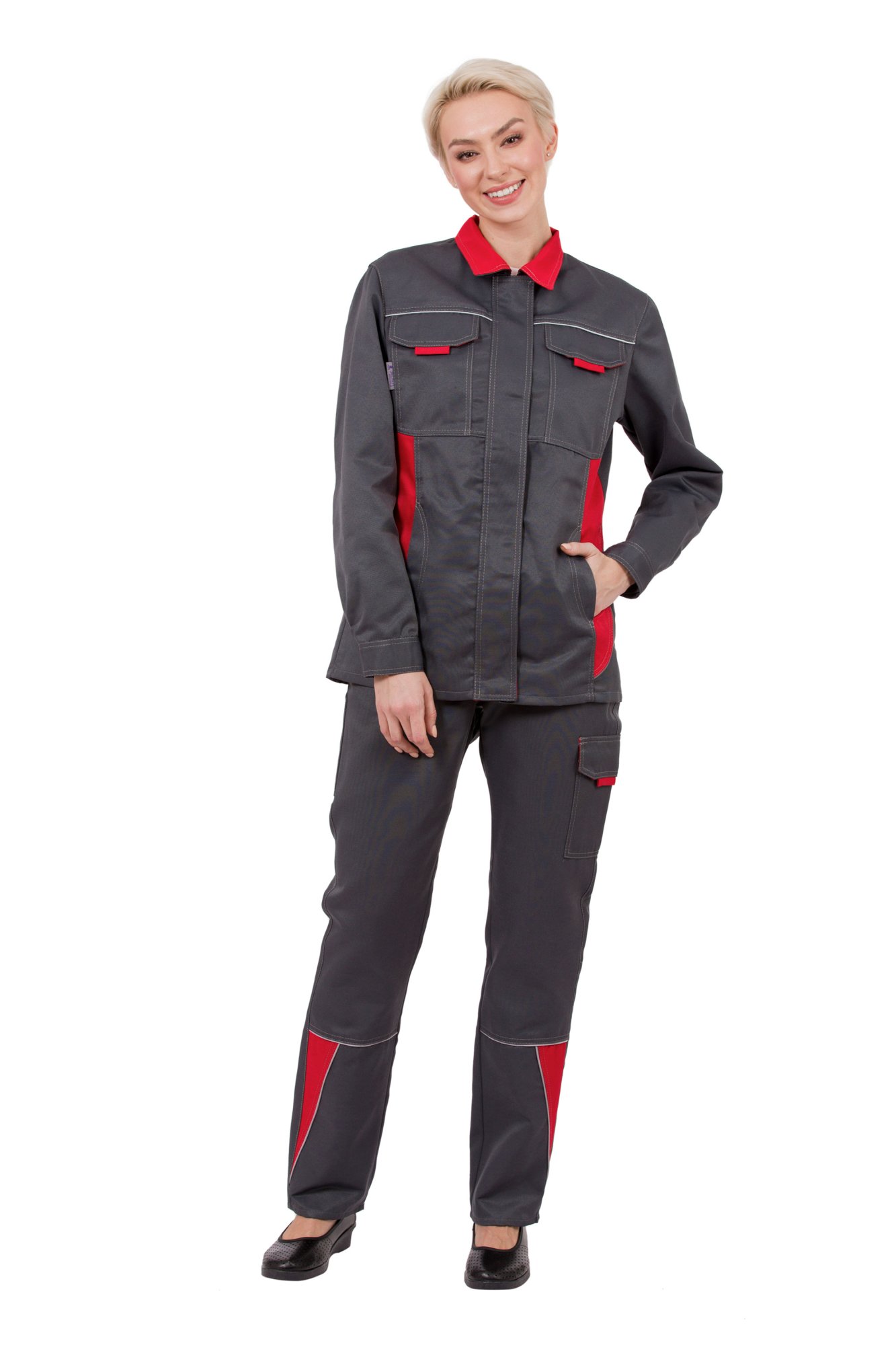 Костюм рабочий женский летний "Страйк" цвет серый/красный