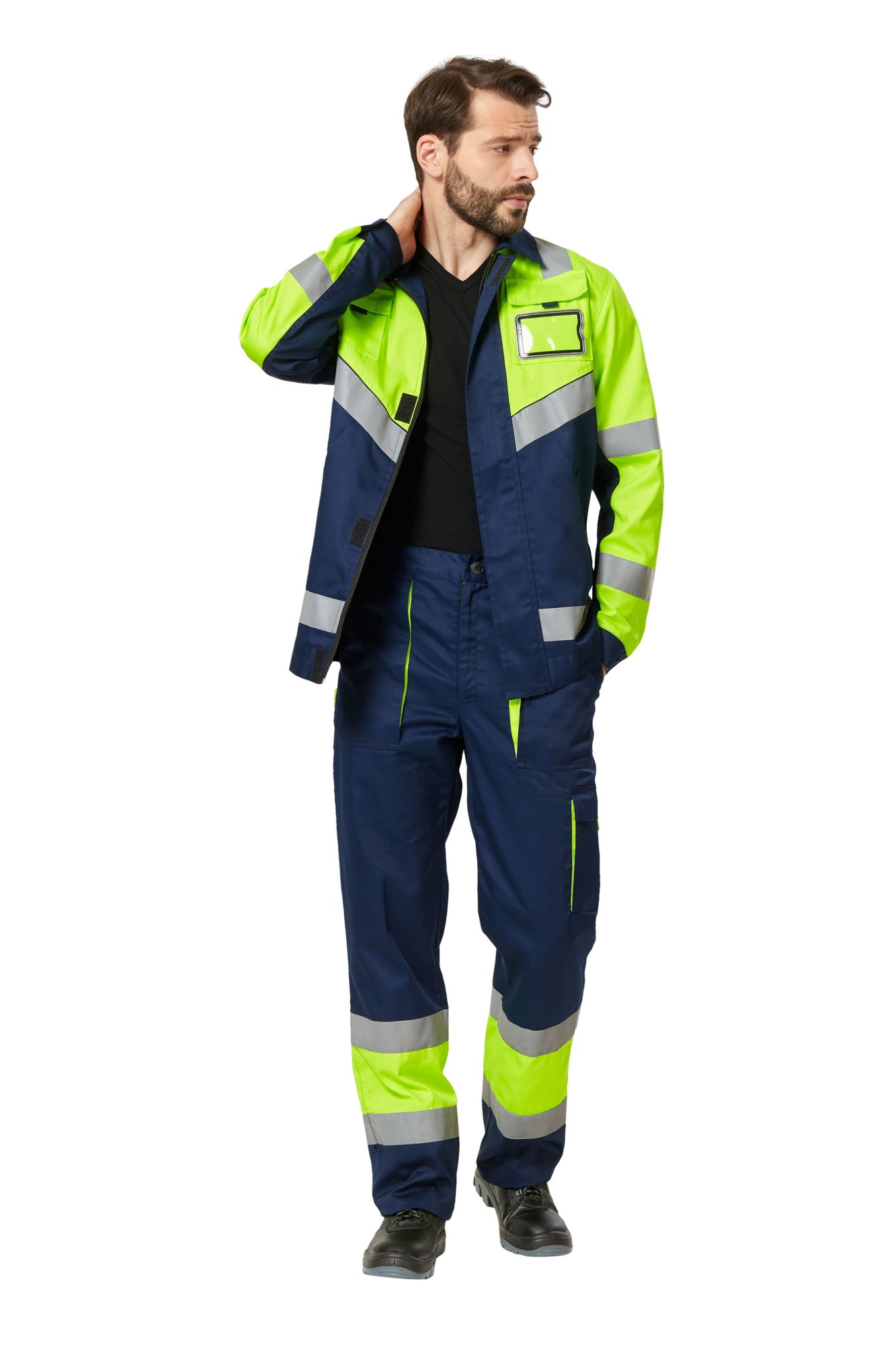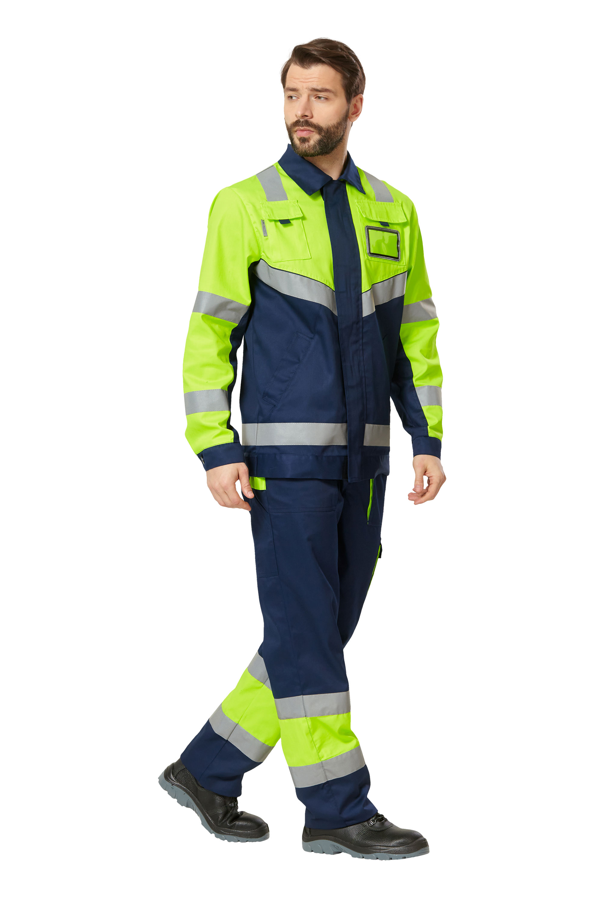 Костюм сигнальный рабочий мужской летний "Илион" цвет желтый/темно-синий