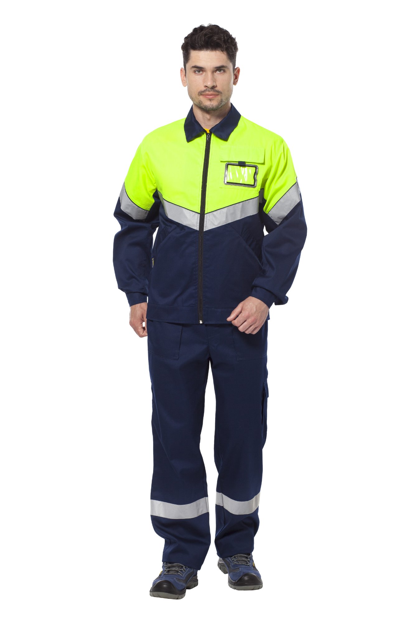 Центральная застежка на молнию. Нагрудный карман с дополнительным карманом для пропуска с экраном из мягкого пластика. Клапан накладного кармана снабжен держателем. Лента СОП шириной 50 мм на спине, груди и плечах куртки.