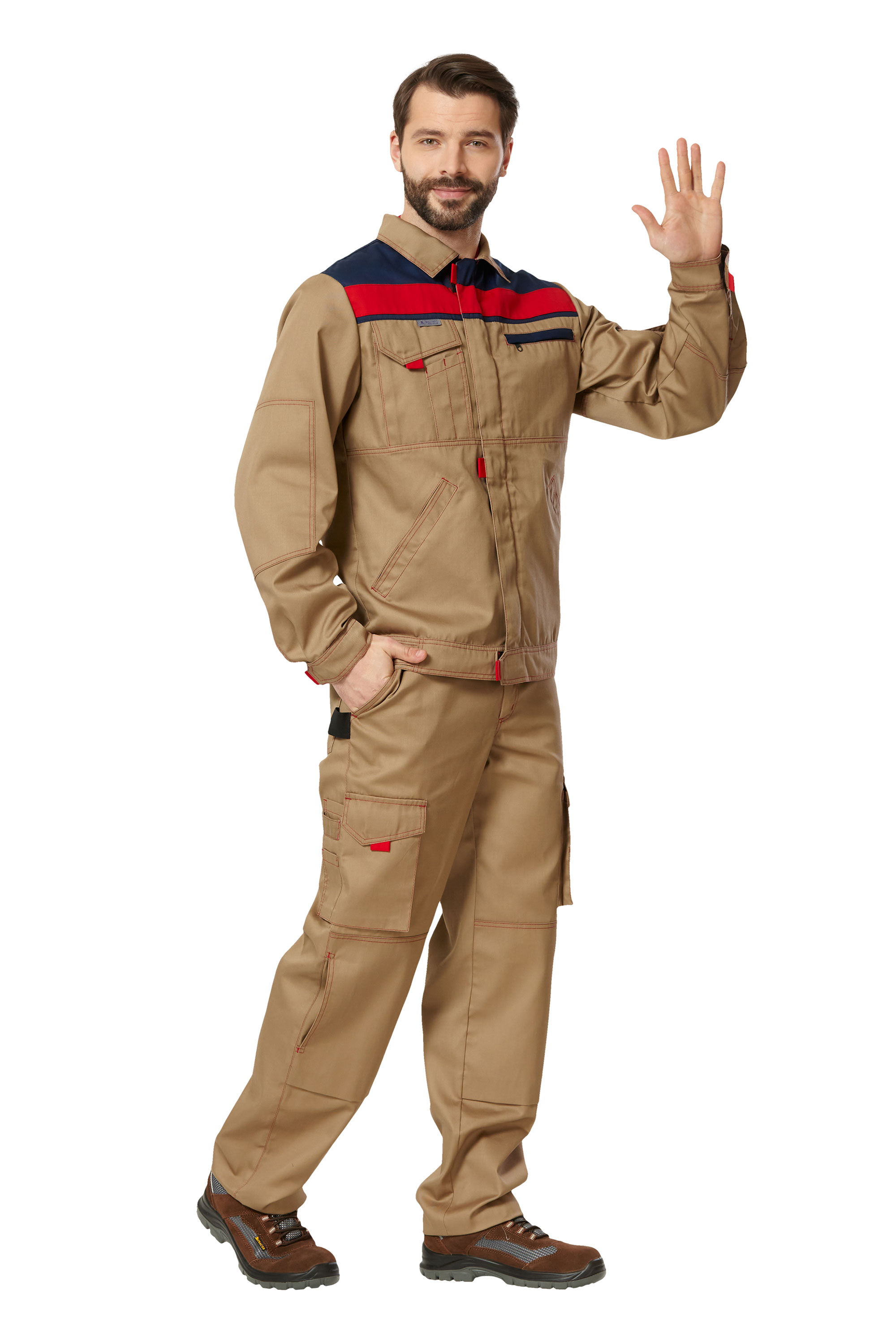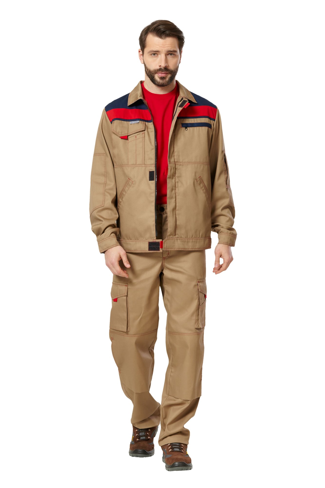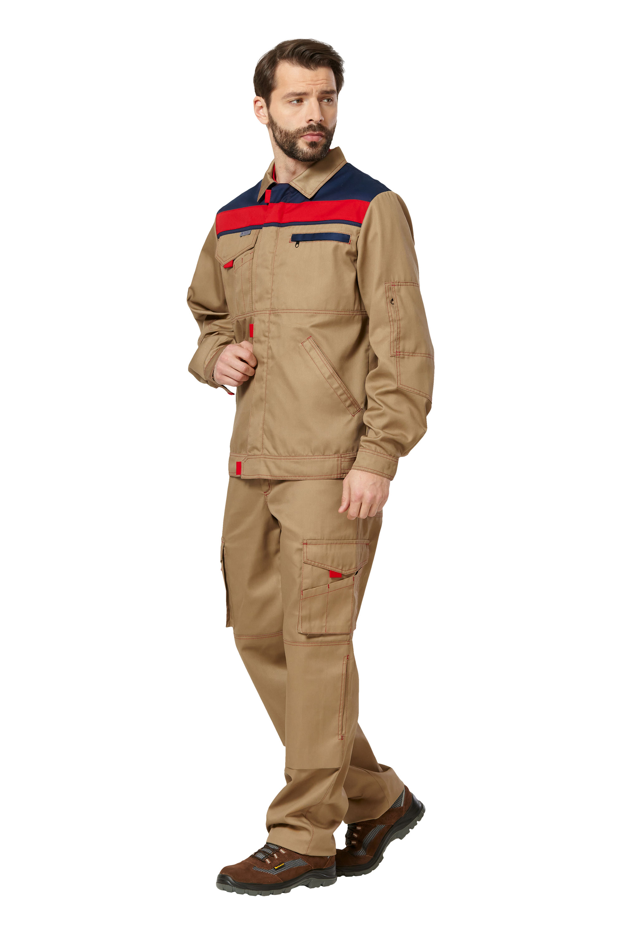 Куртка рабочая мужская летняя "Рольф 1" цвет бежевый/темно-синий/красный