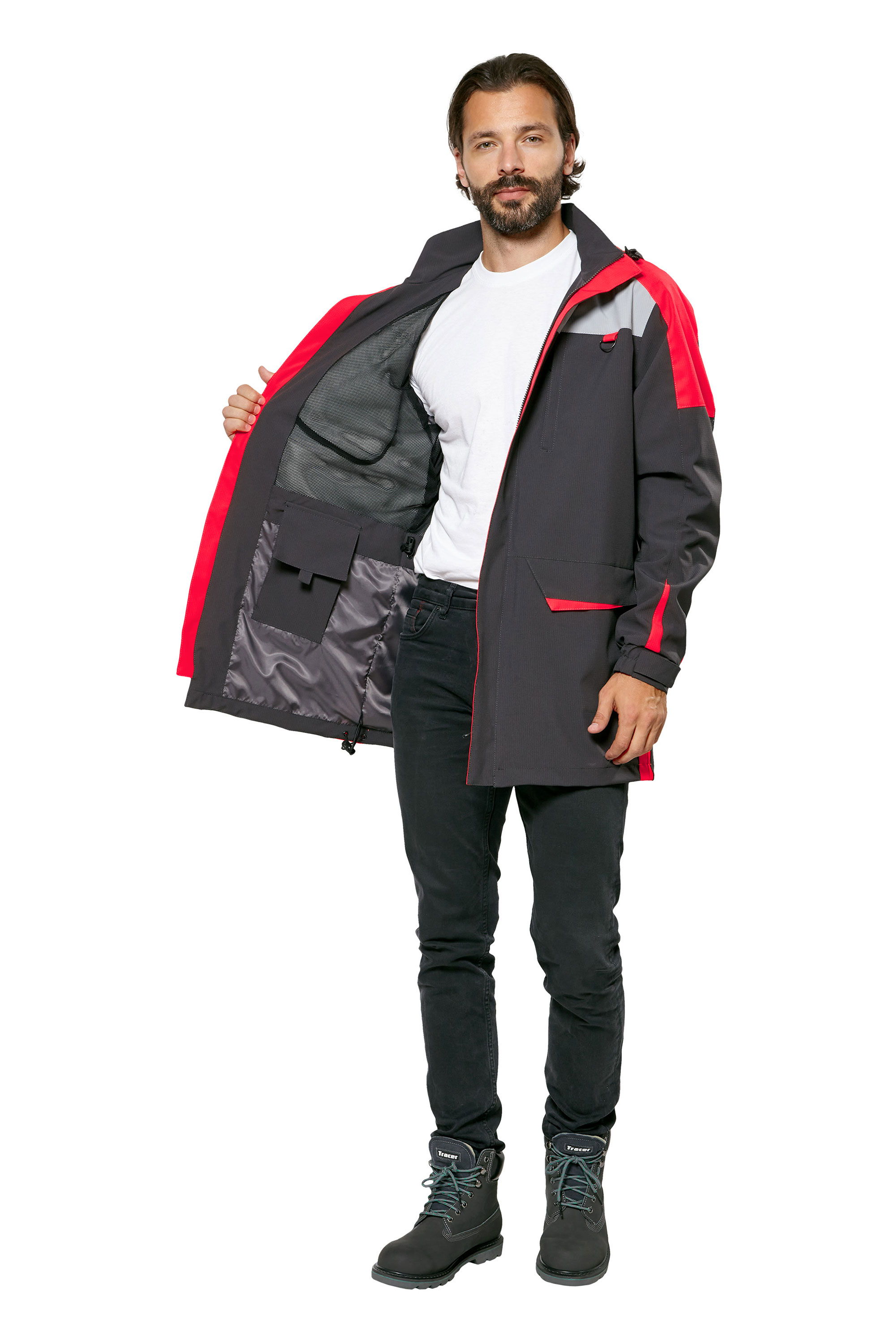 • Карманы: нагрудные на молнии; нижние накладные с клапанами на магнитных фиксаторах; два внутренних кармана