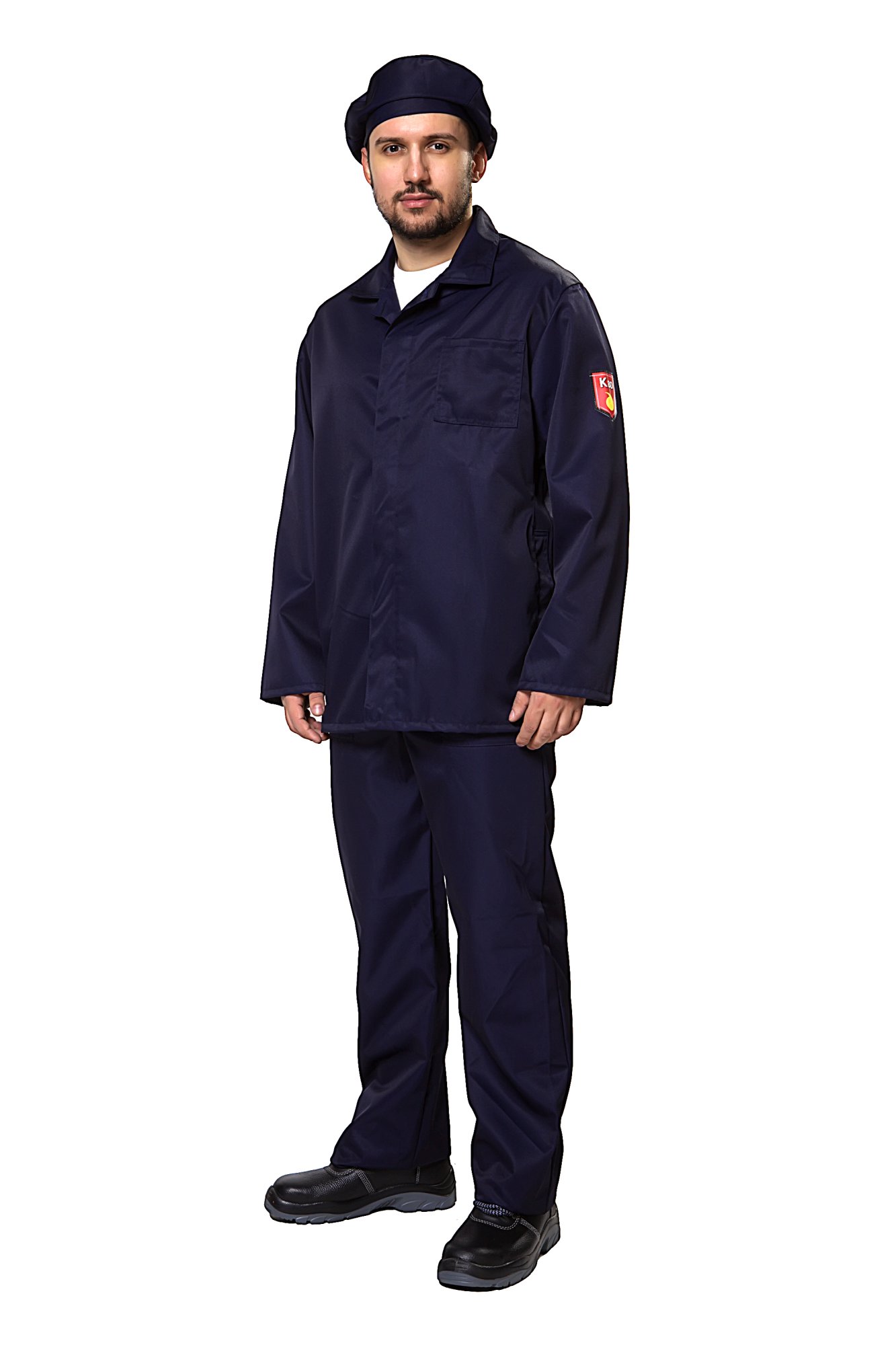 Брюки свободного прямого покроя. Плотный берет выполняет защитные функции головы от вредных сред. Костюм предназначен для защиты от растворов кислот с концентрацией до 80%.