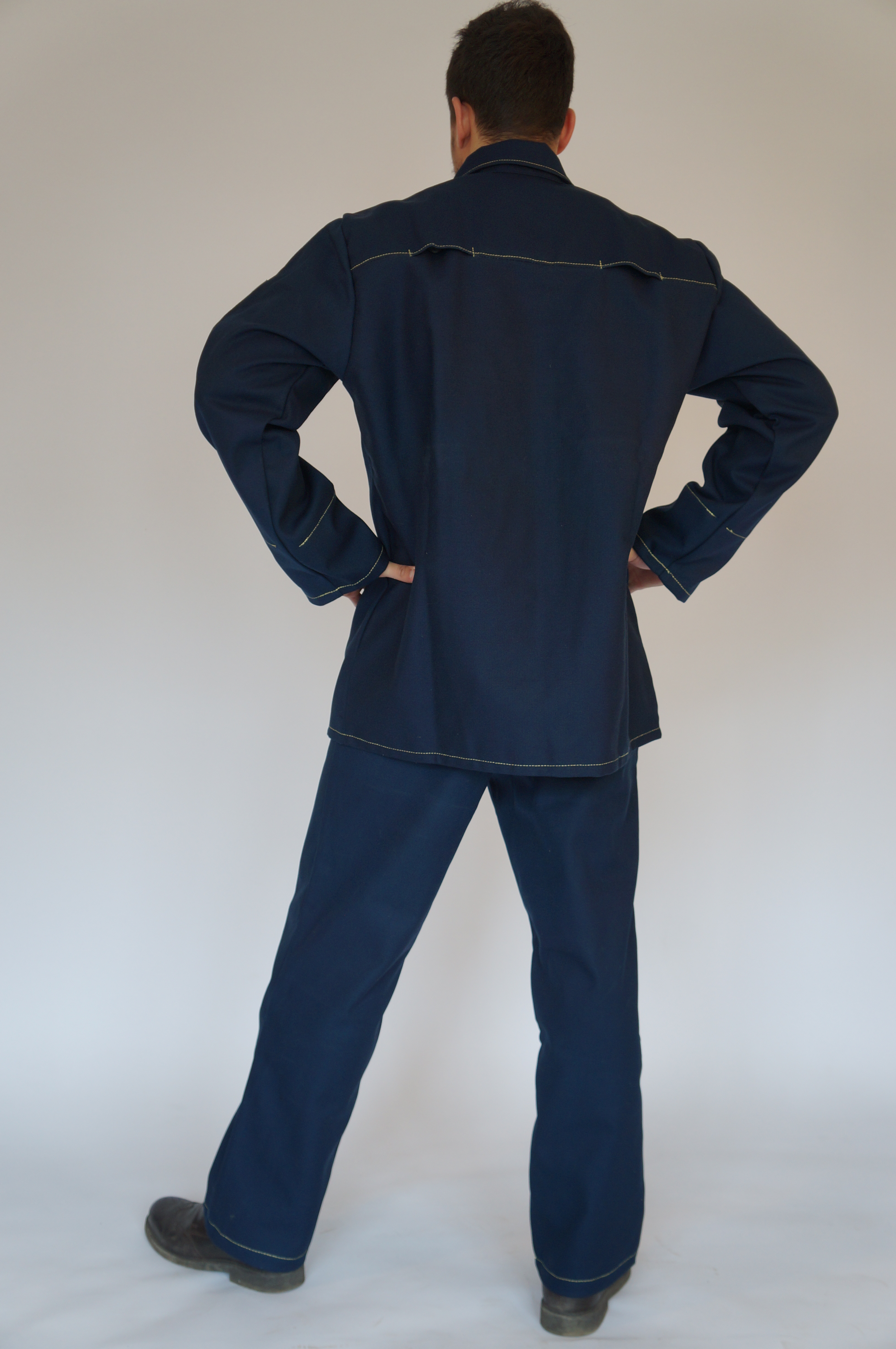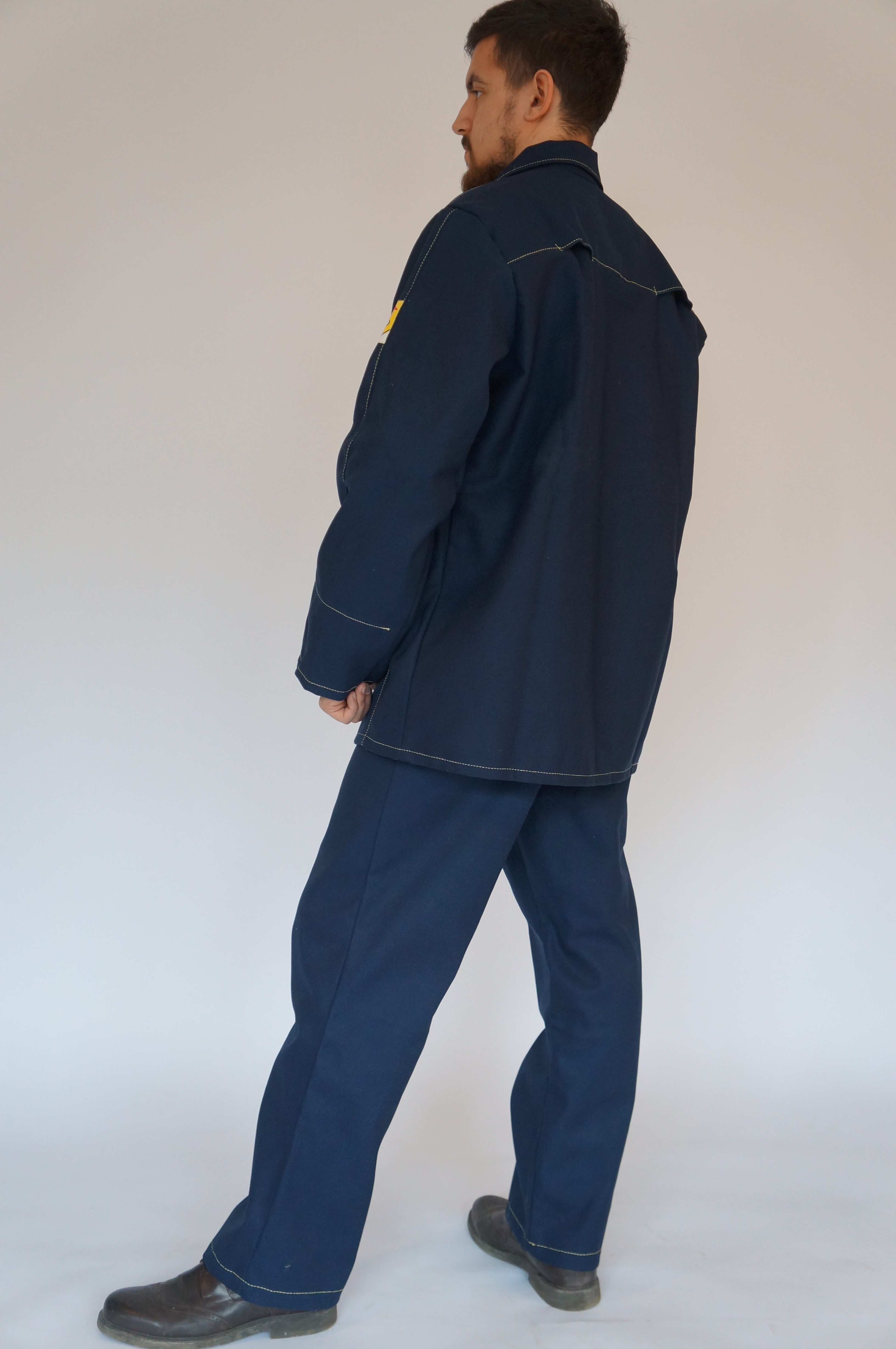 -Костюм второго класса защиты, предназначенный для выполнения операций ручной сварки, при которых расстояние от работающего до источника брызг металла, металлической окалины 50 см, в том числе - в монтажных и полевых условия, при работах в цехах.