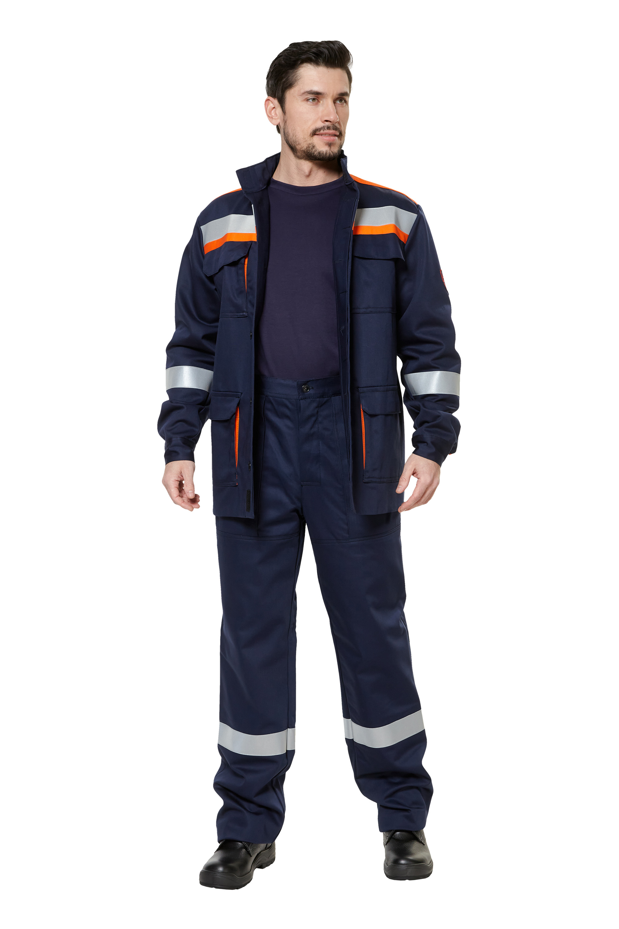 Куртка и брюки. Огнезащитная ткань WORKER 265 E (87% хлопок, 12% нейлон, 1% антистатическая нить), WORKER 320Е (87% хлопок, 12% нейлон, 1% антистатическая нить).
