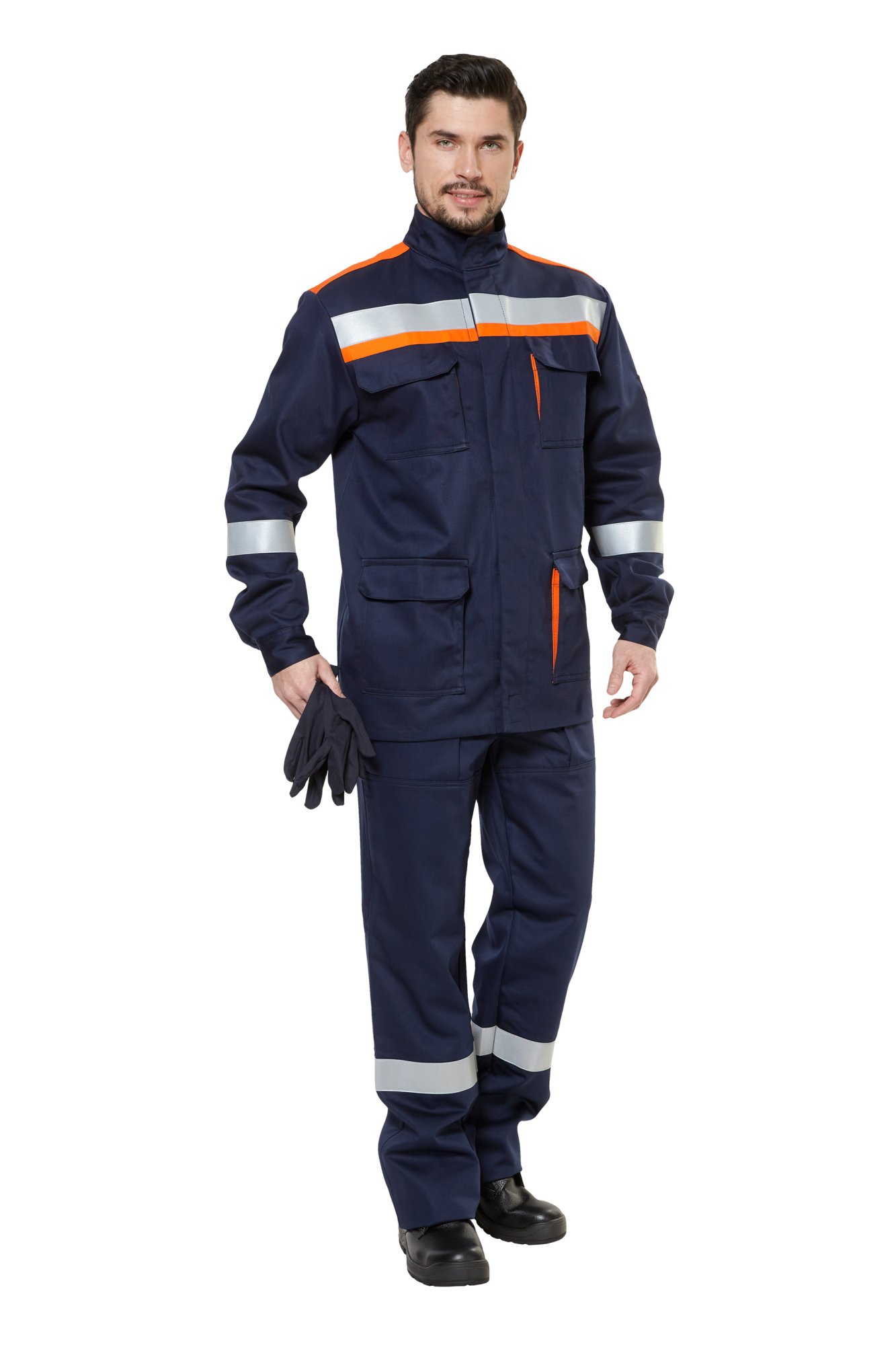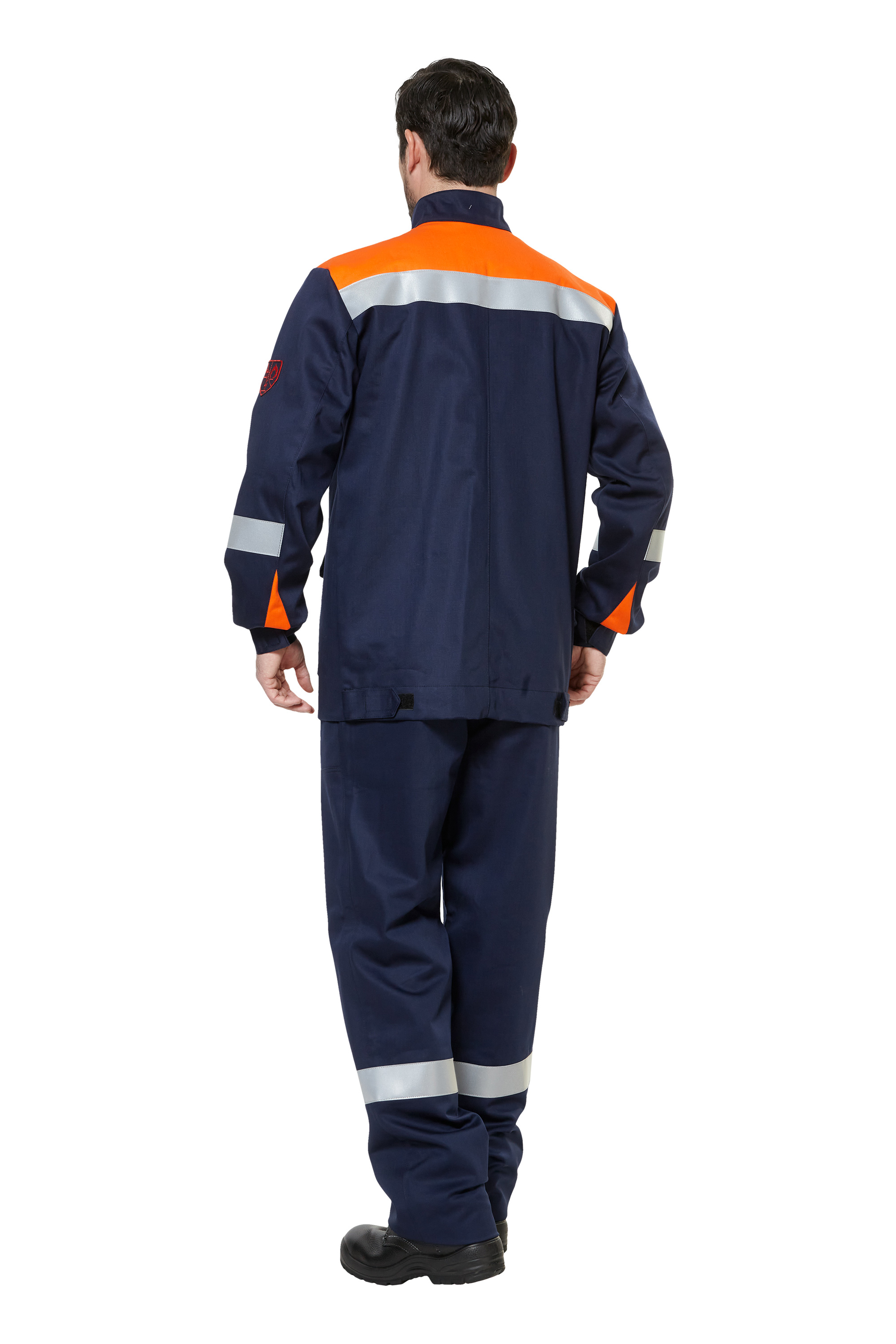 Полочки костюма и брюки спереди усилены дополнительными накладками. Накладные карманы на куртке застегиваются с помощью контактной ленты СОП. Огнезащитная ткань Worker 320E (87%хлопок / 12% нейлон / 1% антистатичная нить), запатентованная огнестойкая технология.