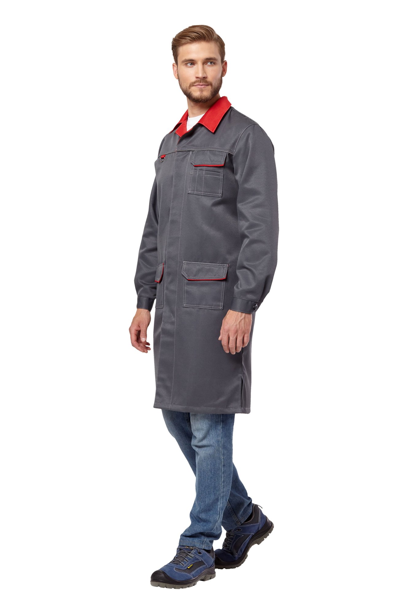 Халат рабочий мужской летний/демисезонный "Страйк" цвет серый/красный