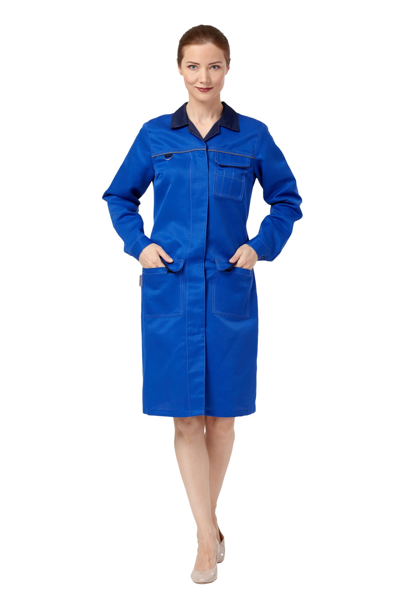 Халат рабочий женский летний/демисезонный "Страйк" цвет василек/синий