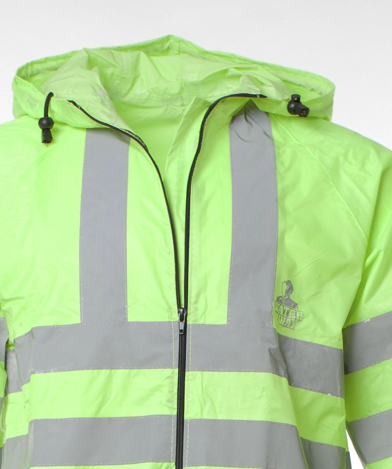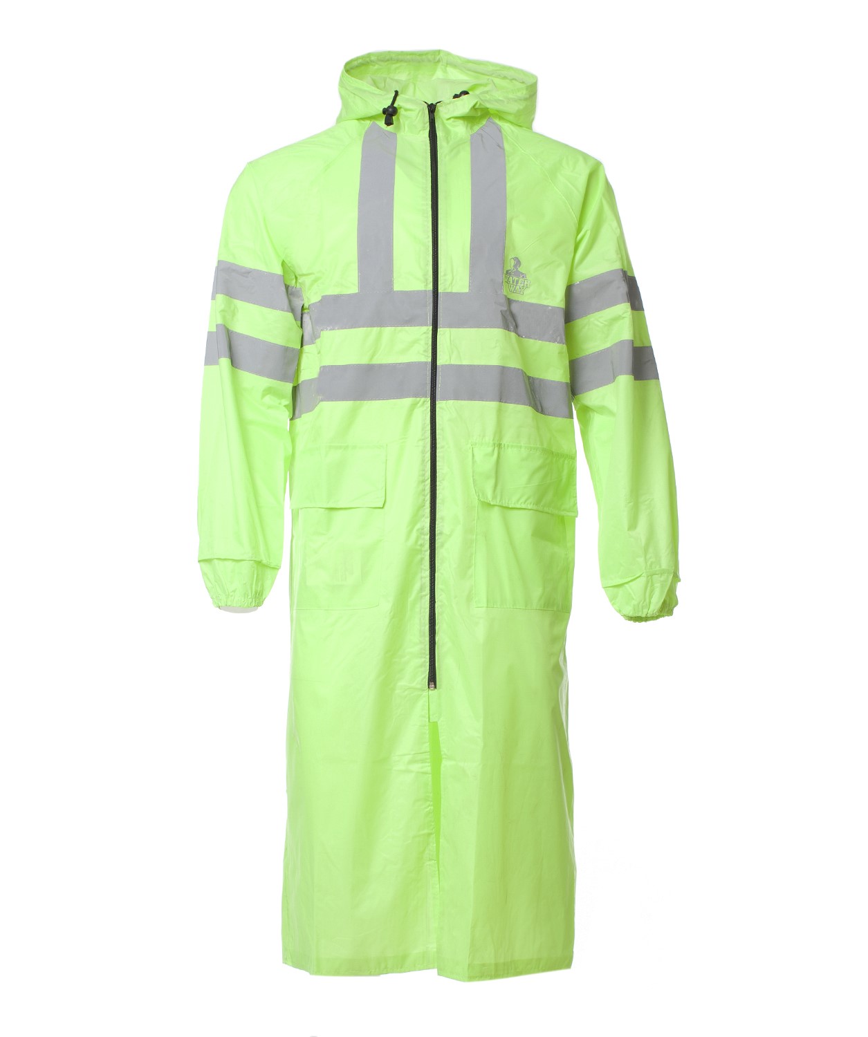 На плащ нанесены светоотражающие полосы шириной 5 см., в соответствии с ГОСТом.