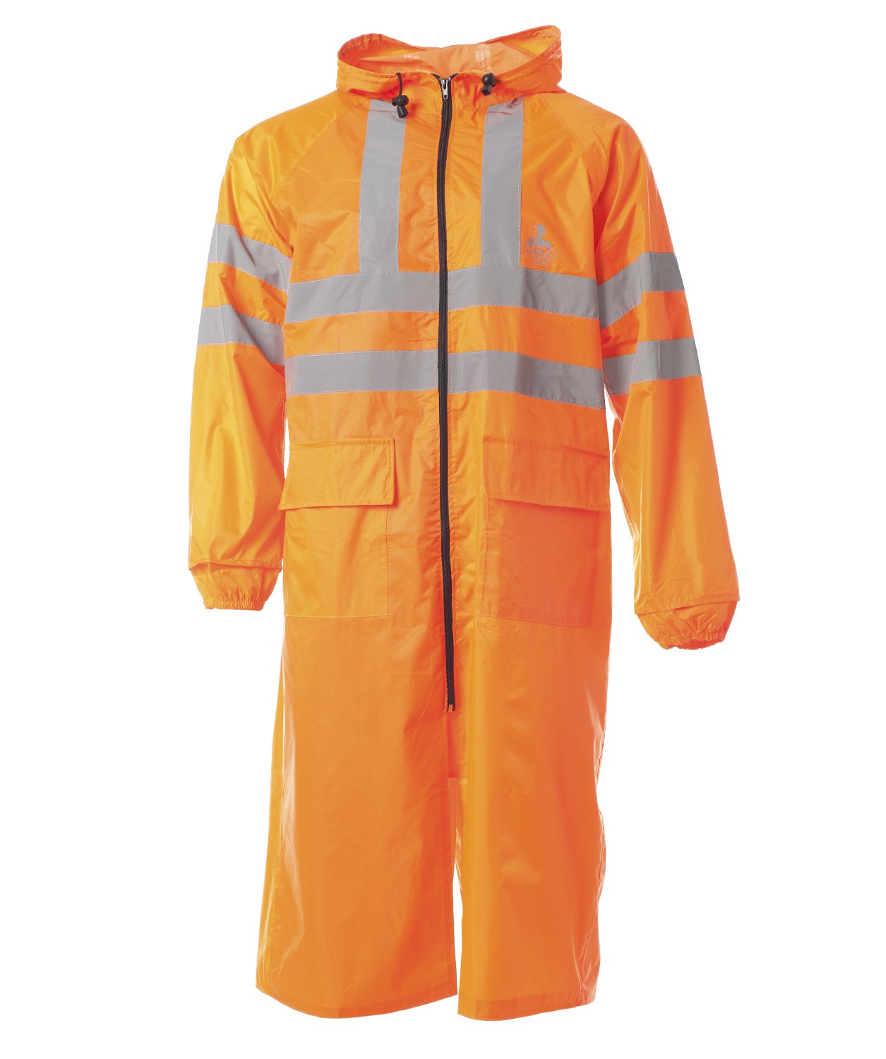 На плащ нанесены светоотражающие полосы шириной 5 см., в соответствии с ГОСТом.