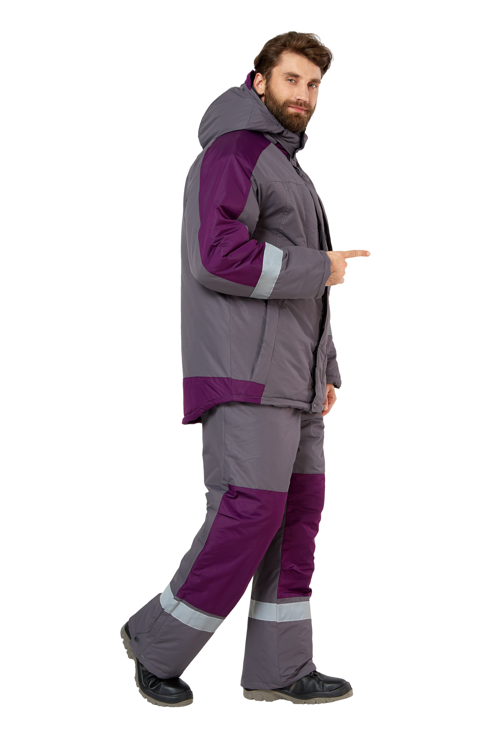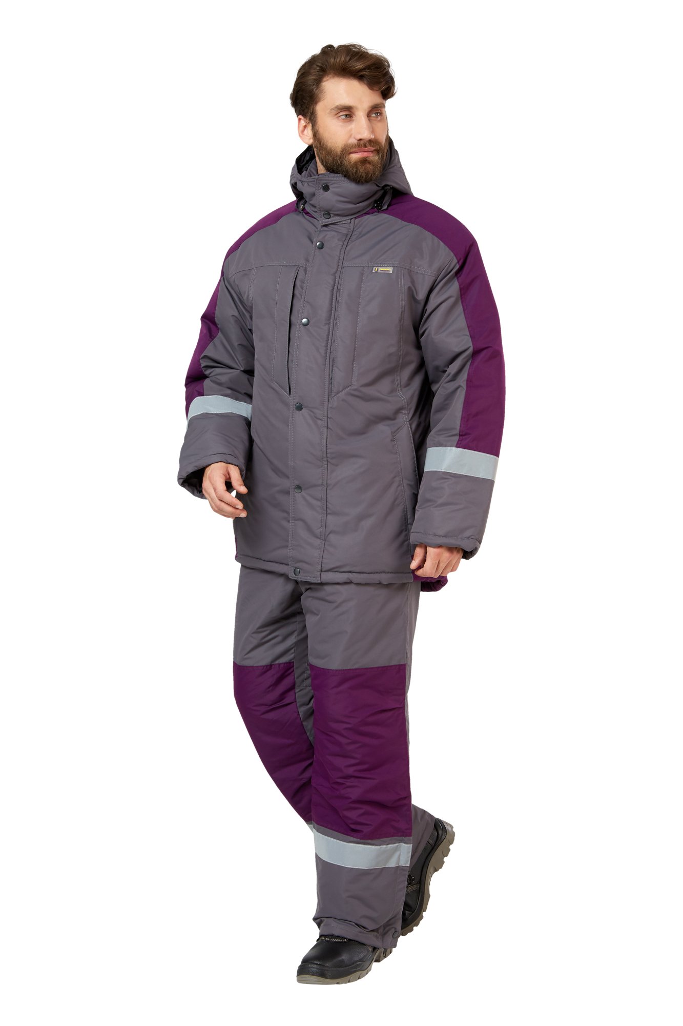 Костюм рабочий мужской зимний "Эксперт" цвет серый/баклажан
