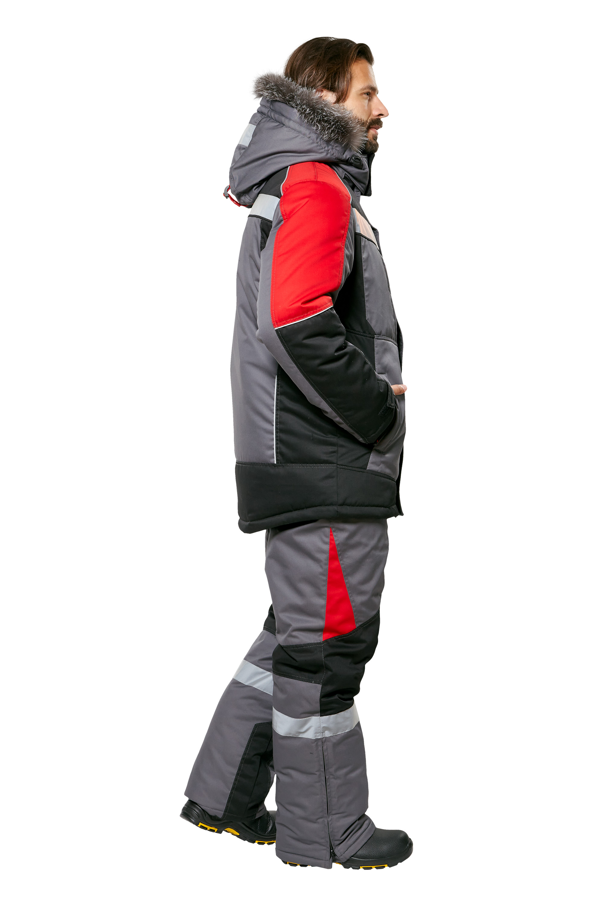 Костюм рабочий мужской зимний "Памир-Норд" 4 и особый климатический пояс цвет серый/черный/красный