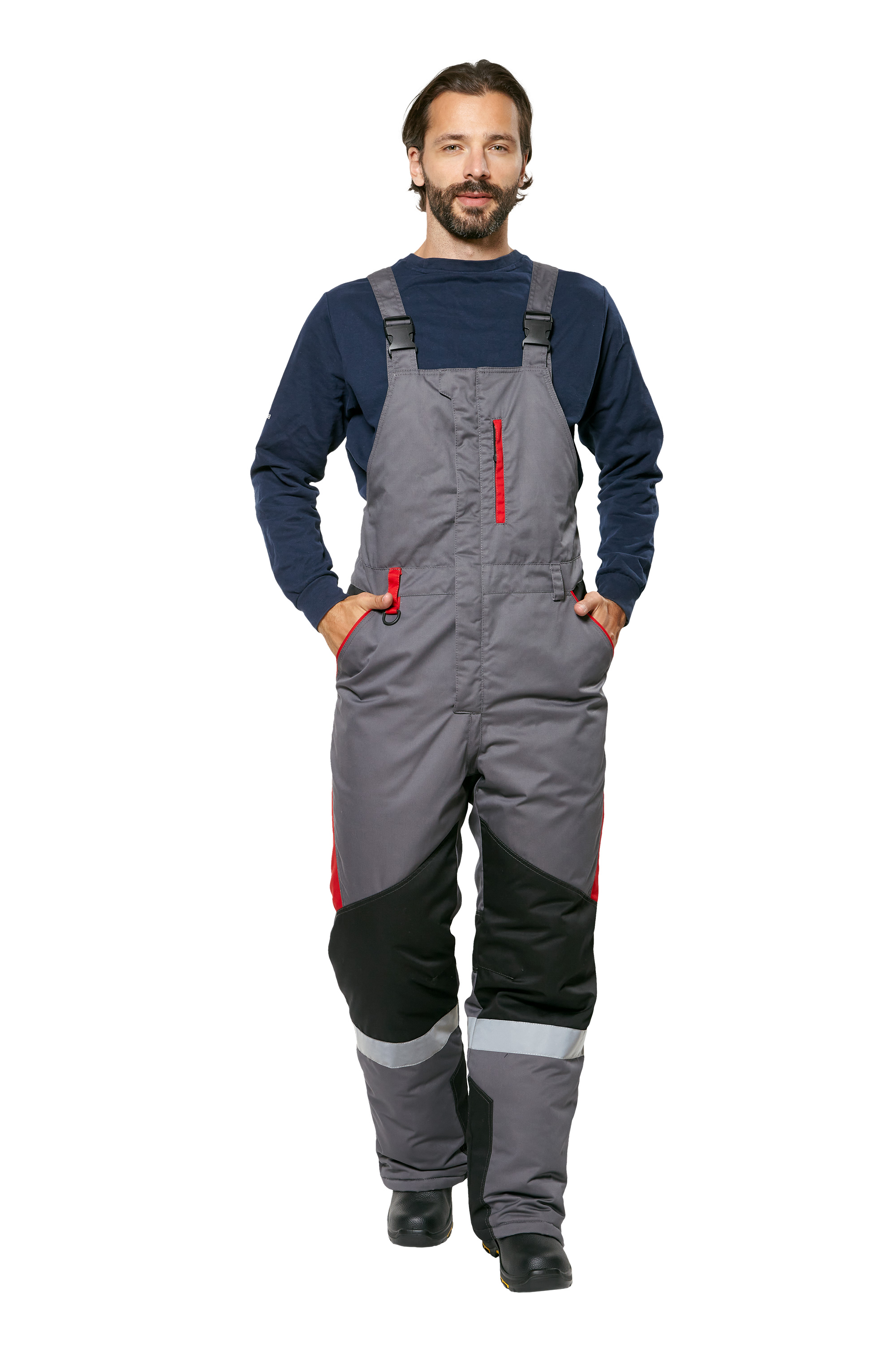 • Визуальные элементы защиты: световозвращающие полосы шириной 50 мм в нижней части брюк.