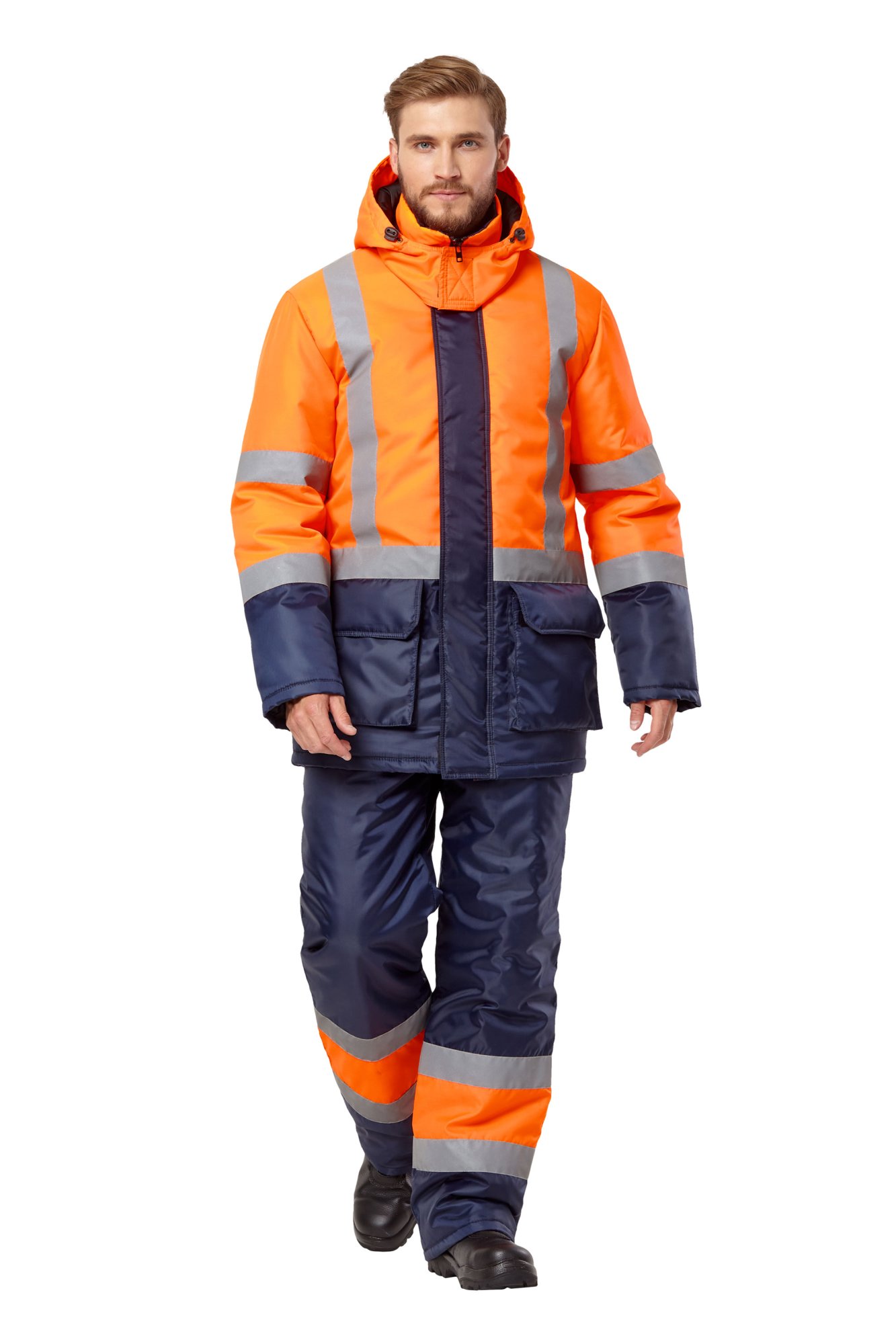 Костюм сигнальный рабочий мужской зимний "Трасса" цвет оранжевый/синий