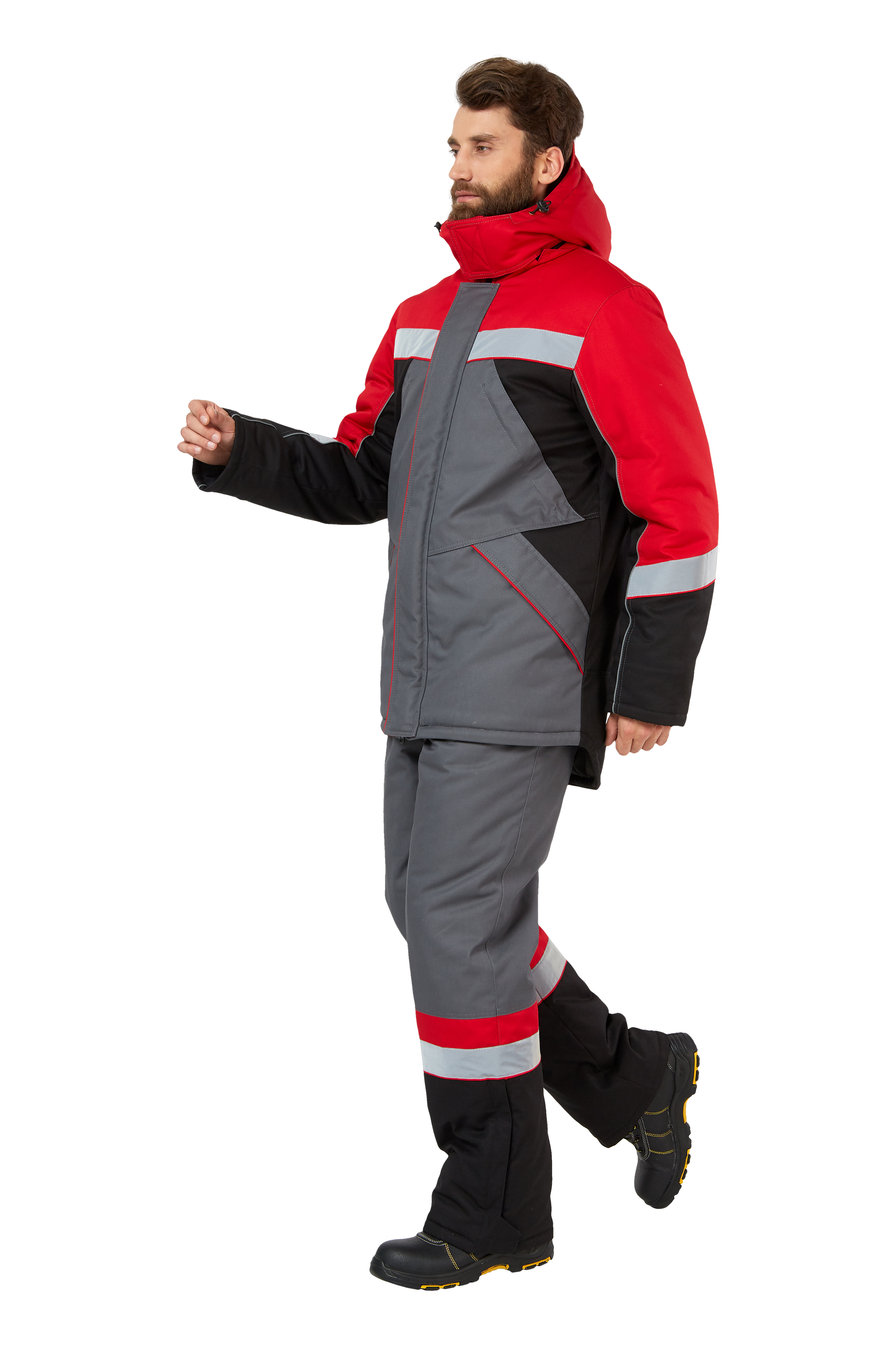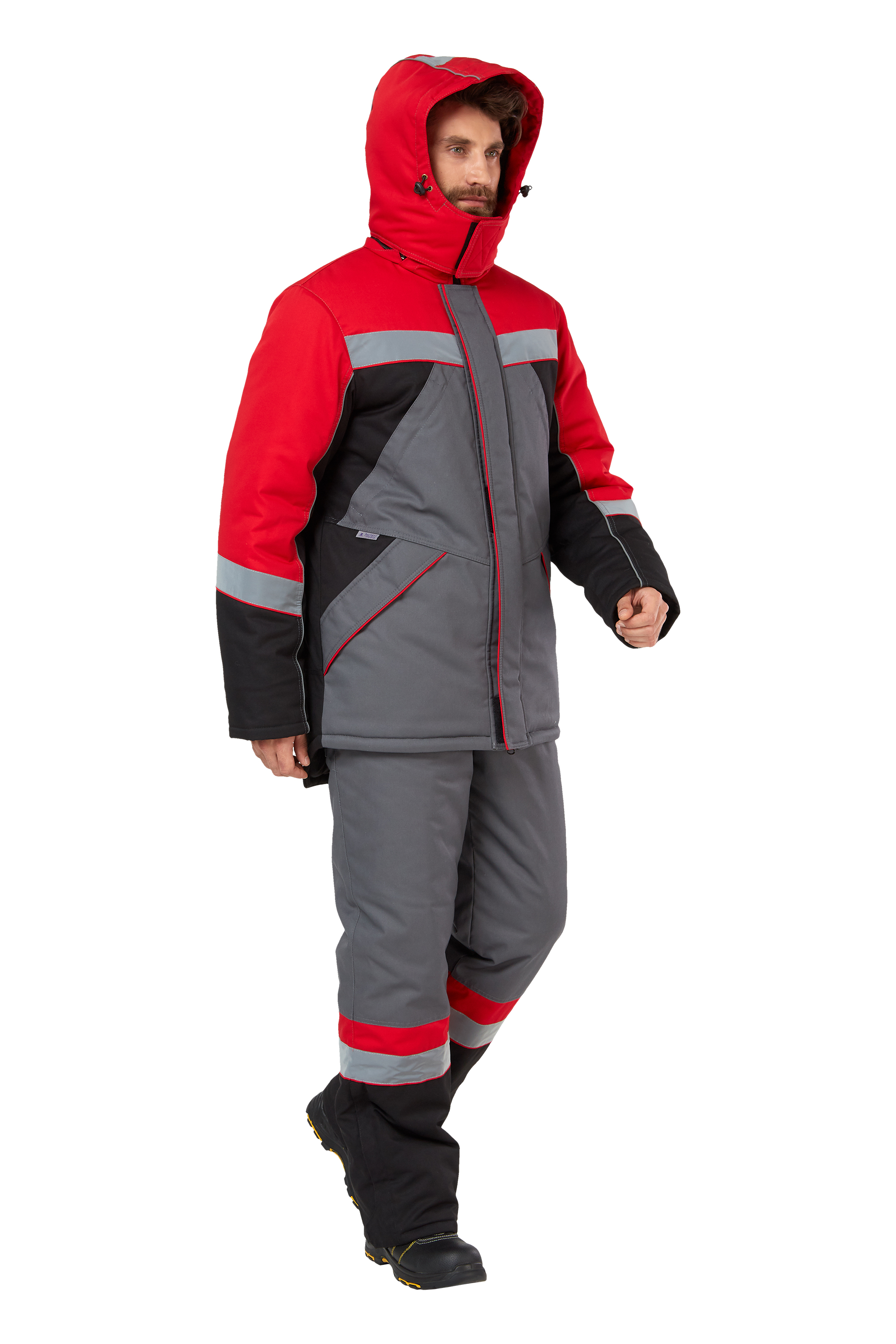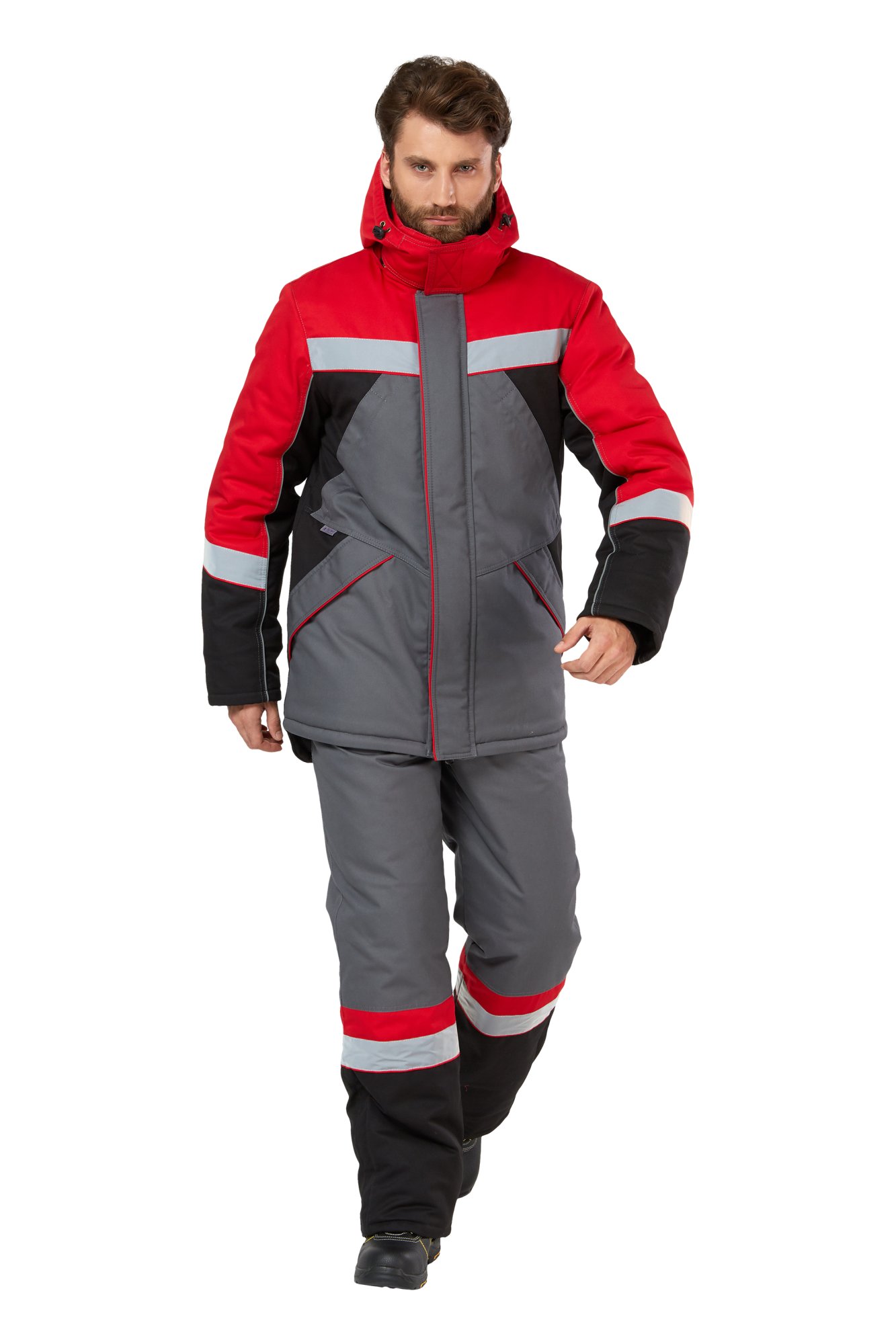 Костюм зимний рабочий мужской "Памир" цвет серый/черный/красный