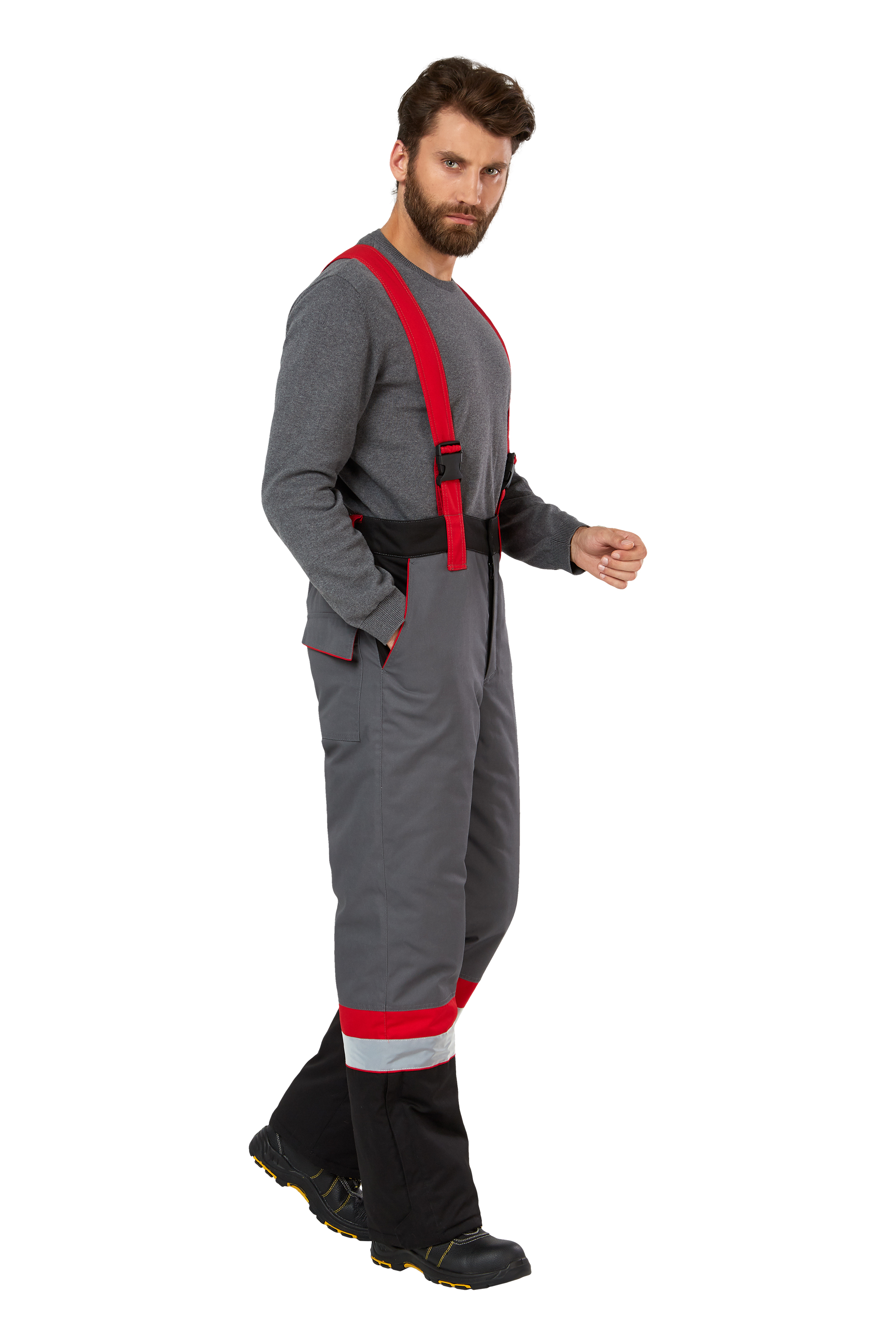 • Визуальные элементы защиты: световозвращающие полосы шириной 50 мм в нижней части брюк.