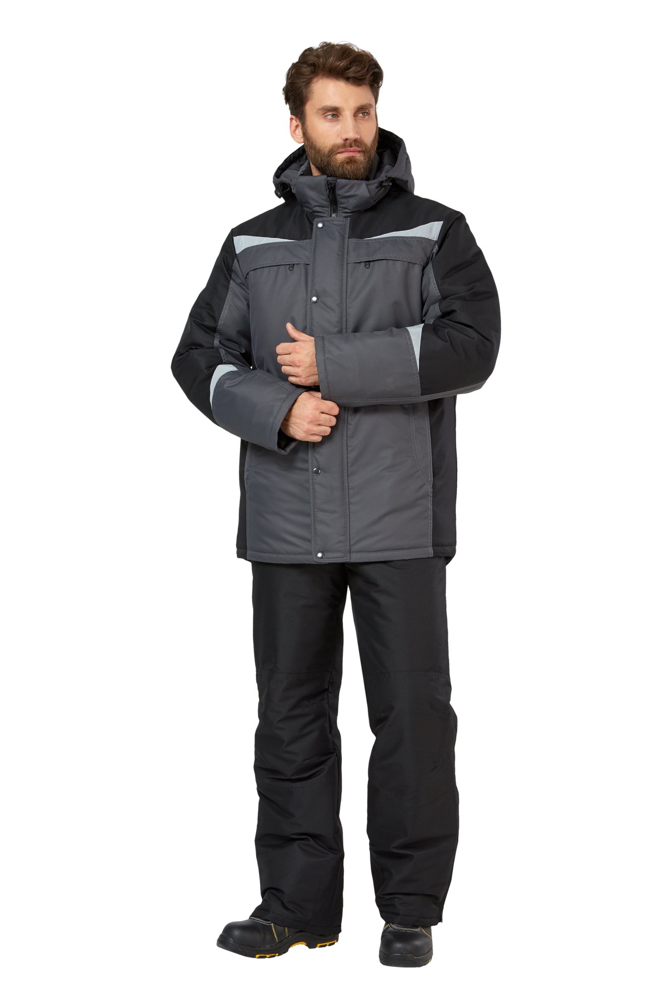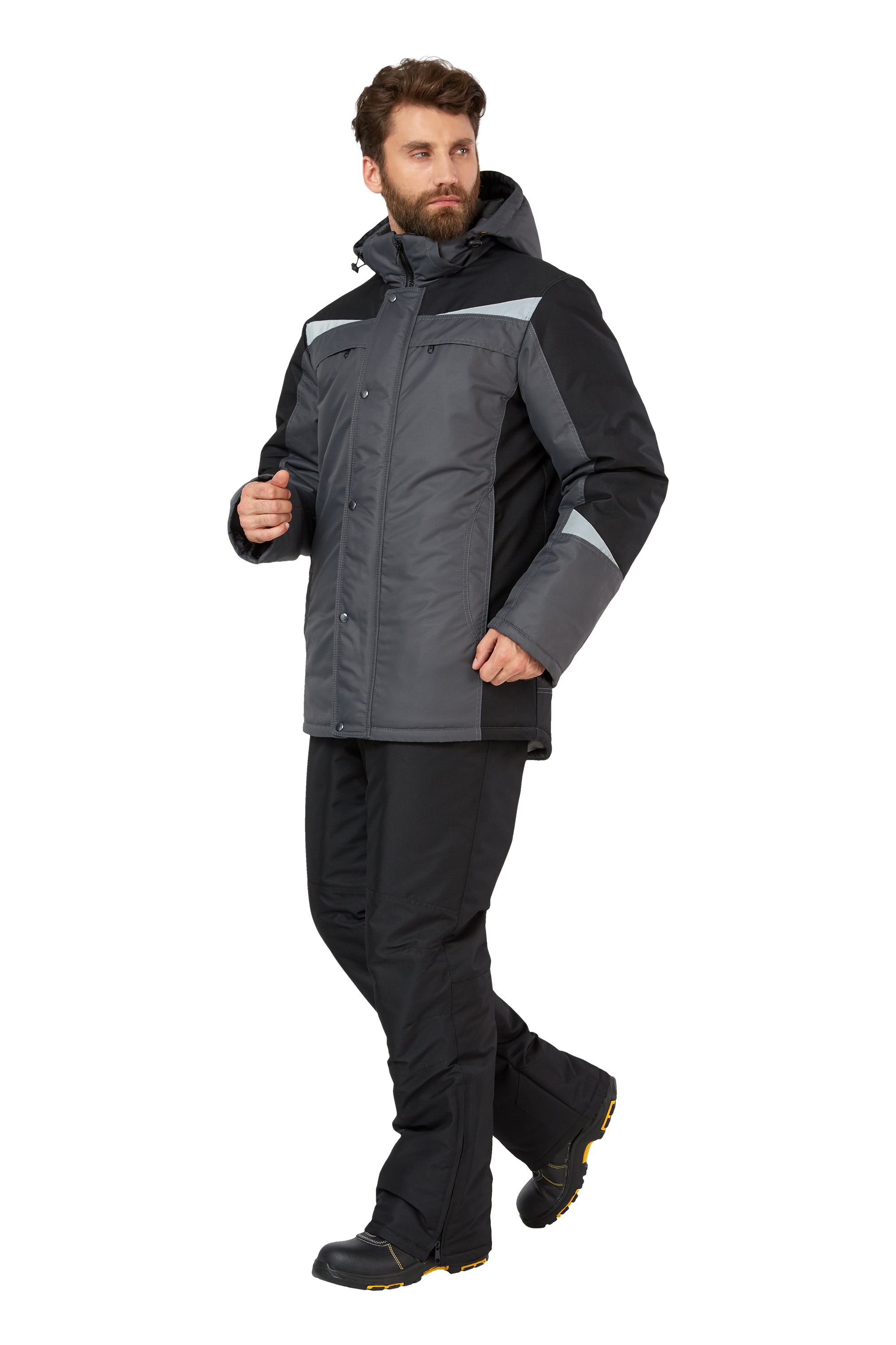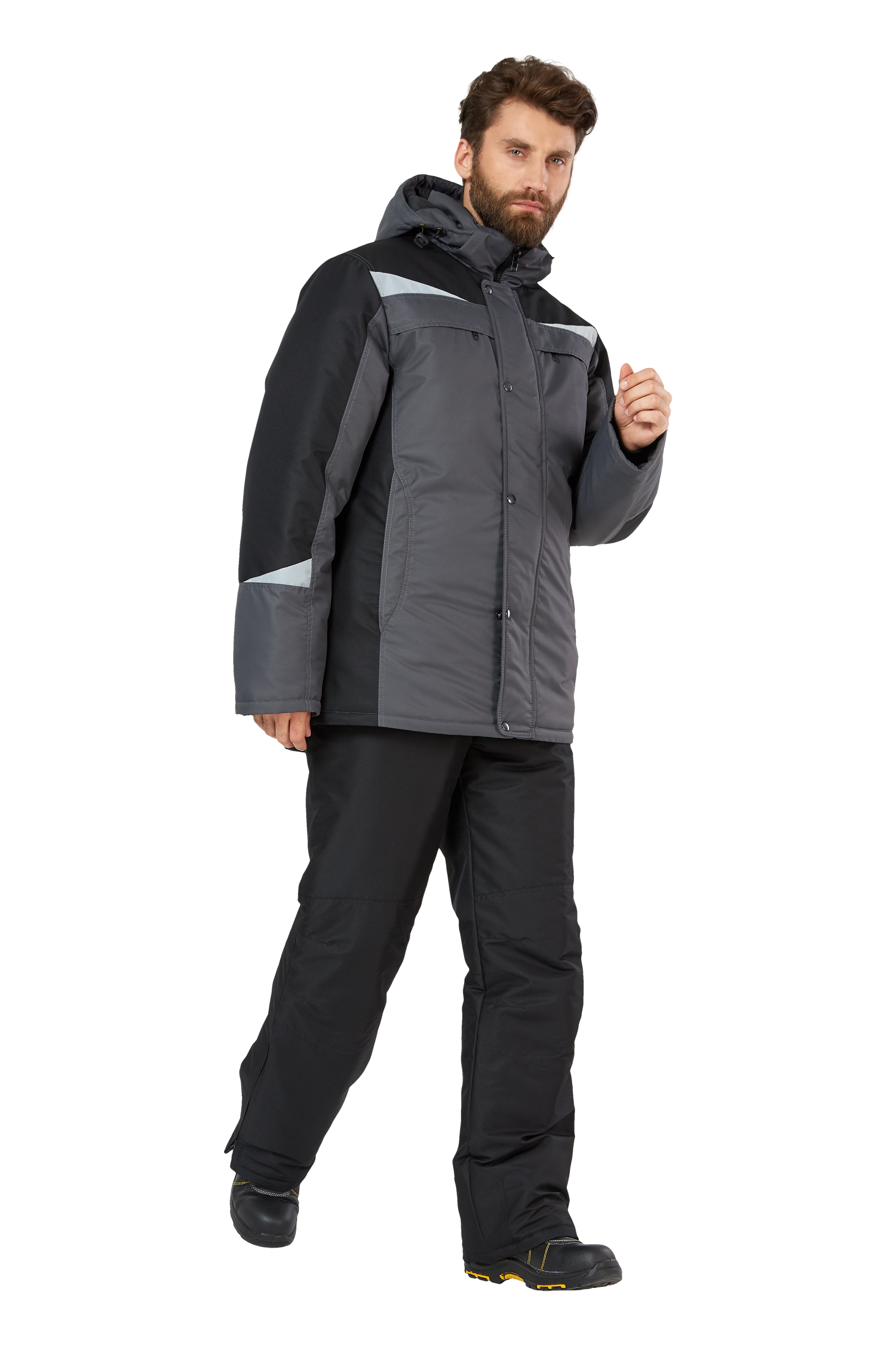 • Визуальные элементы защиты: фигурные световозвращающие элементы на кокетках полочек, спинки, по низу рукавов в виде треугольников