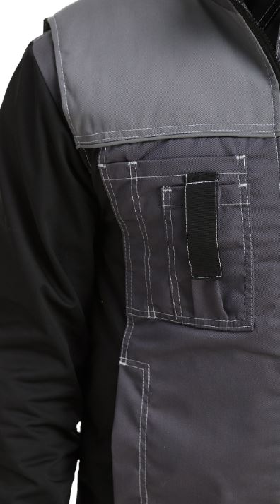 Каждая деталь, будто то карман, пояс или застёжка на рукаве, отстрочена контрастными основному тёмное-серому цвету нитками. Благодаря этому создаётся впечатление, что перед Вами дизайнерская вещь, а не рабочая жилетка. Однако это не так: в жилете “Город” можно и нужно выполнять целый спектр работ, потому что он располагает множеством подходящих для этого “фишек”:
