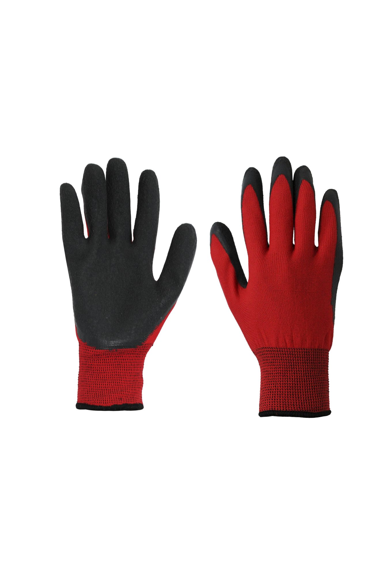 Перчатки рабочие "Барракуда" безшовные из стрейч полиамида с частичным рельефным латексным покрытием цвет красный/черный
