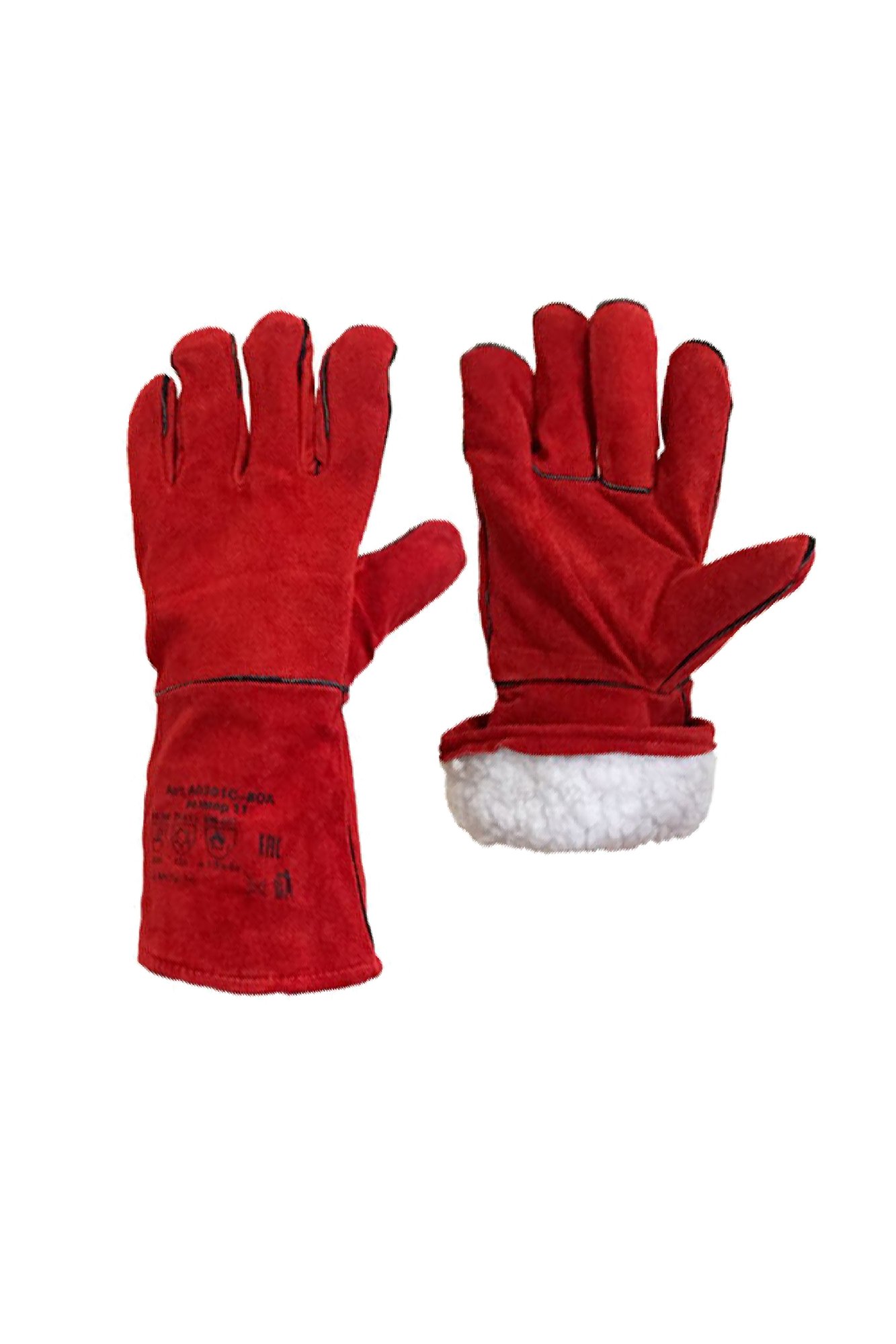 Краги зимние рабочие "Трек" спилковые цвет красный