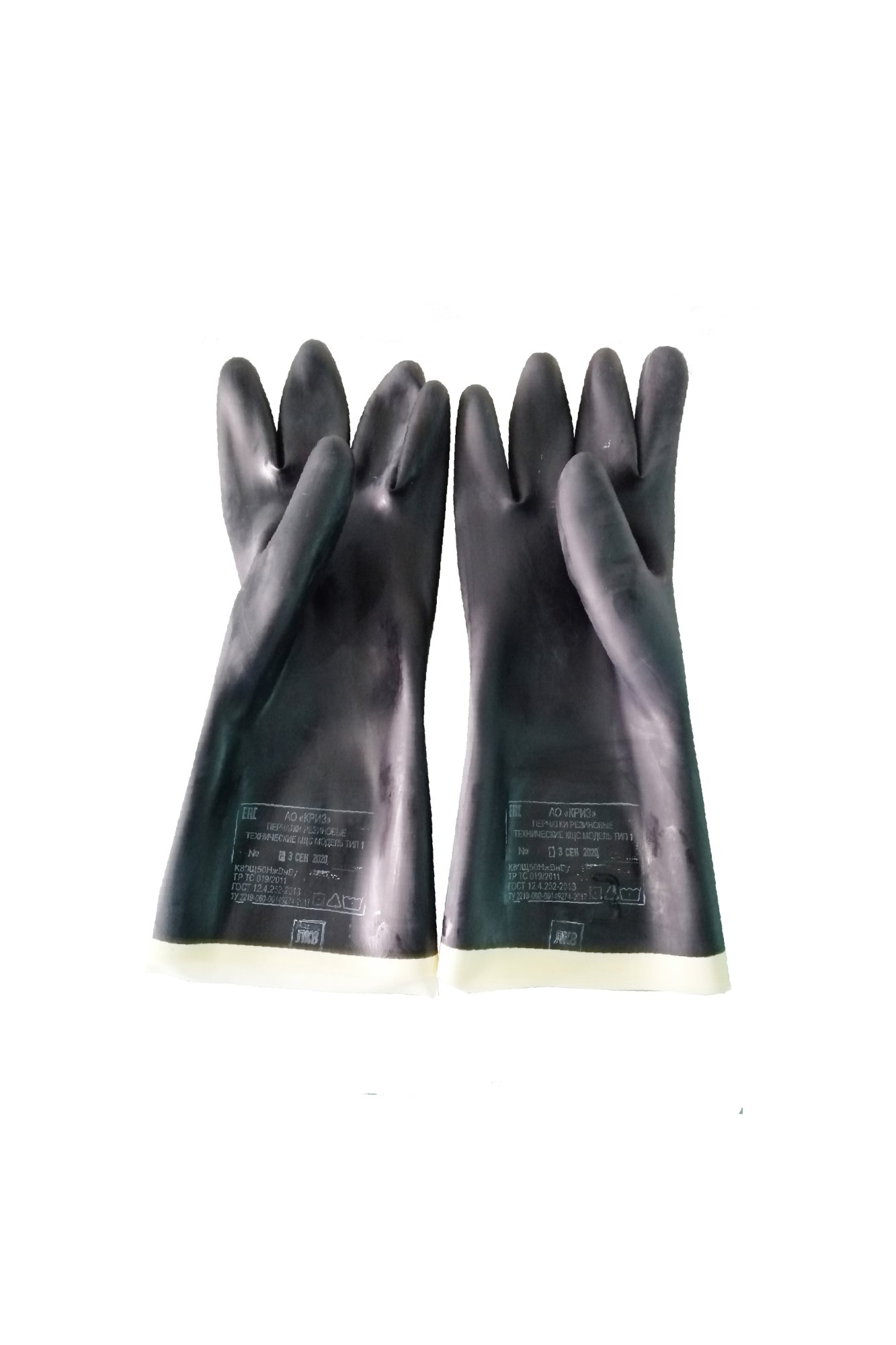 Защищают руки при работе с разбавленными и концентрированными кислотами, щелочами и их солями, неароматическими (алифатическими) углеводородами и спиртами алифатического рода, растительными и животными маслами, а также сыпучими и красящими химическими веществами. Перчатки двухслойные, внутренний и наружный слой отличаются по цвету. Перчатки выдерживают концентрацию кислот до 80% и щелочей до 50%.