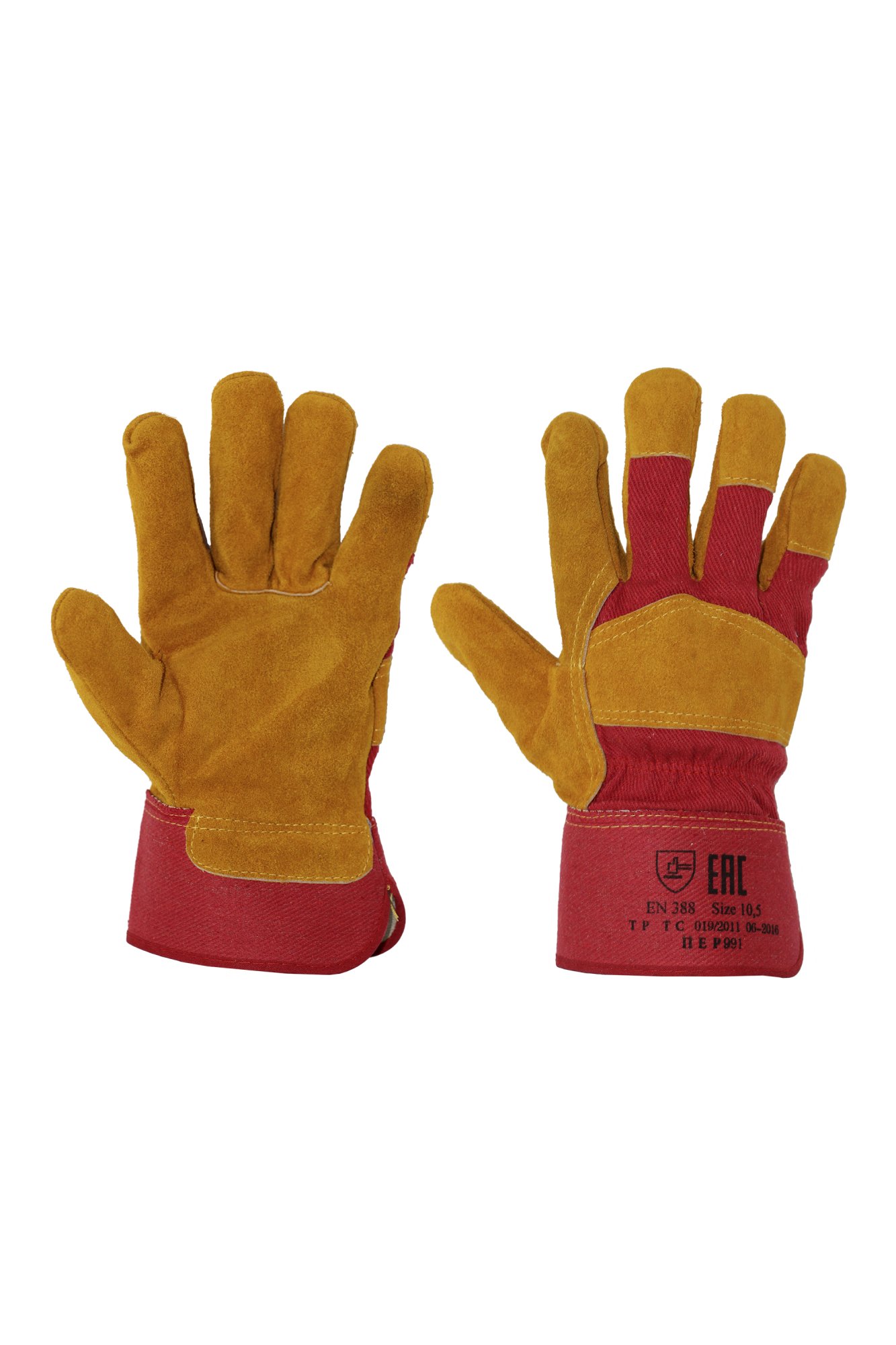 Перчатки рабочие "Русский Хват" из кожевенного спилка цвет красный/коричневый