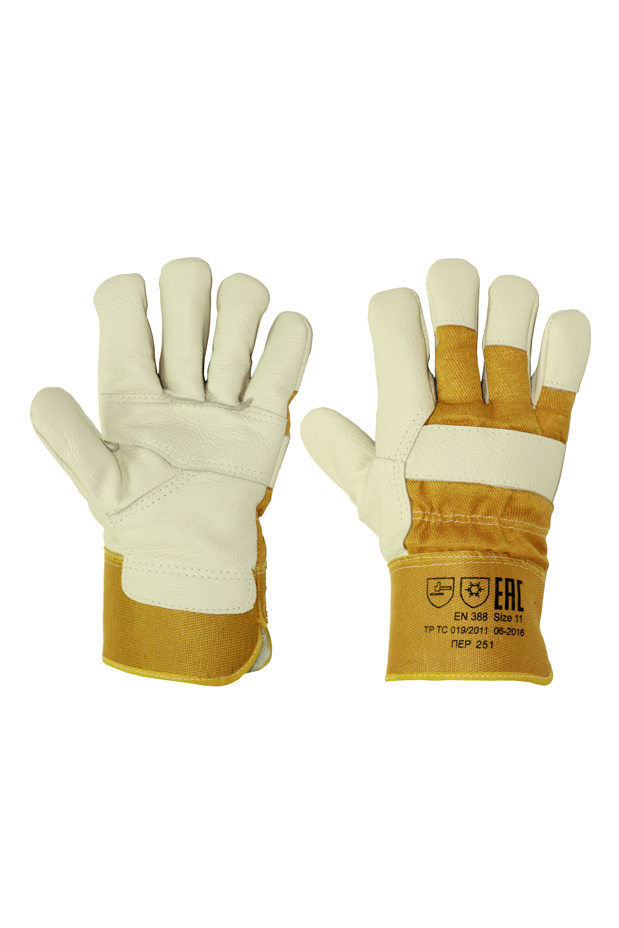 Перчатки рабочие зимние кожаные комбинированные цвет бежевый/коричневый
