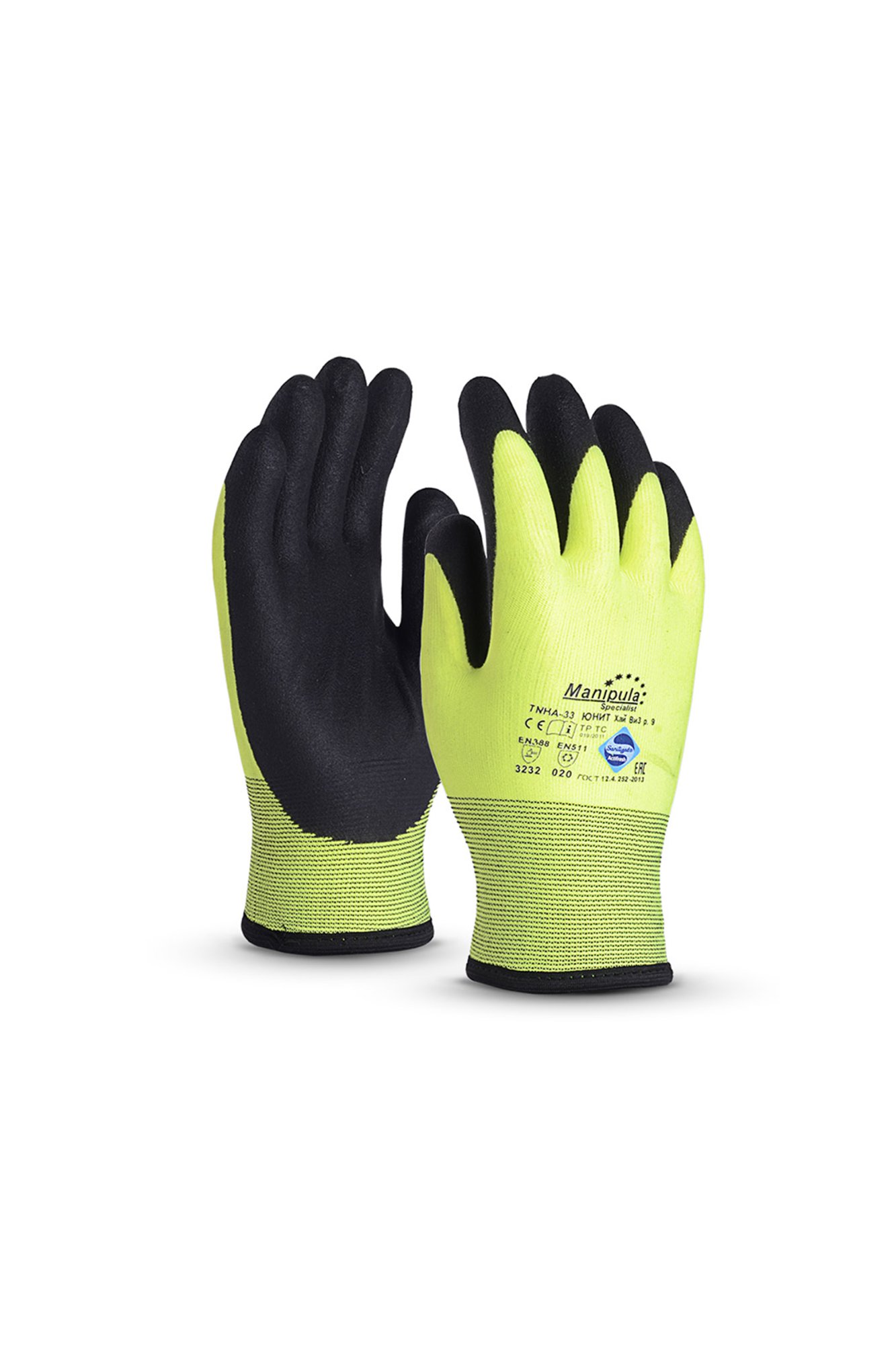 Перчатки рабочие зимние "Юнит Хай Виз TNHА-33" цвет черный/лимон
